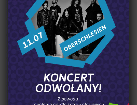 “Z wielką przykrością musimy odwołać nasz koncert na Dniach Piekar w dniu 11.07.2015. Michał Stawiński, nasz wokalista, ma zapalenie krtani i strun głosowych, nie może śpiewać, mówić przez najbliższe dni. Jesteśmy przekonani, że zrozumiecie i wybaczycie” – taką informację podał na swojej stronie zespół Oberschlesien. Wokaliście Michałowi Stawińskiemu, życzymy szybkiego powrotu do zdrowia!