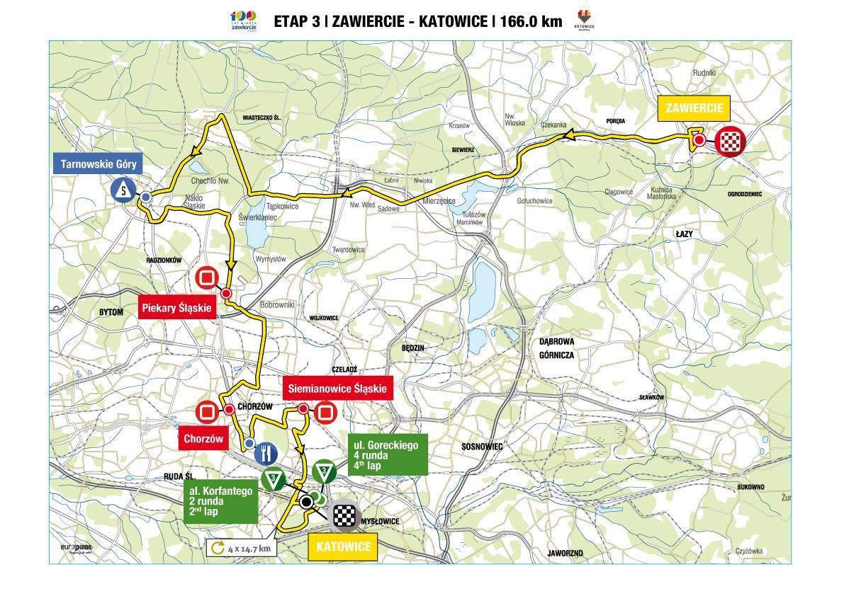 Na zaproszenie TVP byłem dziś rano na starcie Tour de Pologne w Zawierciu. Oczywiście na rowerze, więc trasę, którą pojadą kolarze sprawdziłem osobiście. Tam i z powrotem ponad 90 kilometrów. Osiągnąłem maksymalną prędkość niemal 60 km na godzinę utrzymując średnią powyżej 31 km na godzinę. Jestem przekonany, że kolarze pokonają ten dystans o wiele szybciej. Czekamy na nich w Piekarach Śląskich. O 14.00 zapraszam pod Urząd Miasta i Miejski Dom Kultury, a około 16.20 warto wyjść na ulice miasta, którymi przejadą najlepsi kolarze świata!