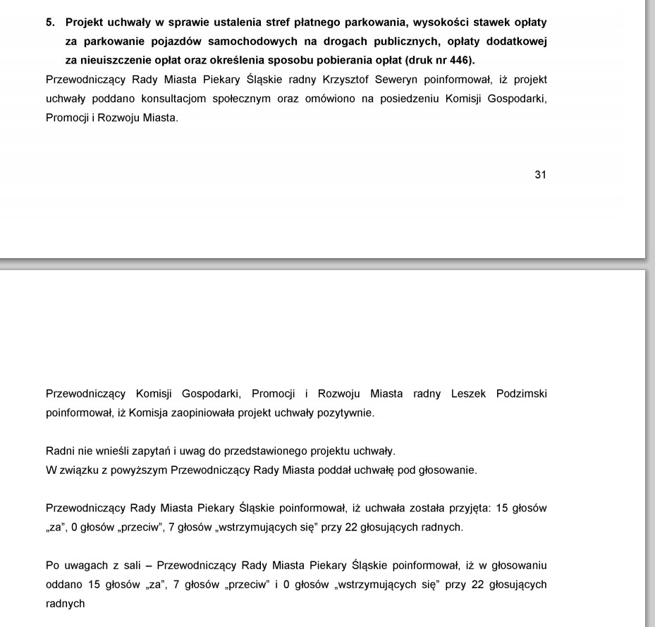 byli wstrzymujący się od głosowania za super uchwalą, 15 radnych Korfantego było za