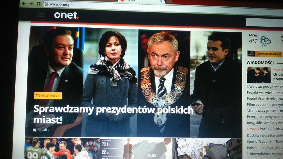“Grupa Onet.pl we współpracy z serwisem MamPrawoWiedziec.pl zaczynają akcję “Sprawdzamy prezydentów”, podczas której dziennikarze i analitycy podsumują pierwszy rok kadencji prezydentów 107 polskich miast”