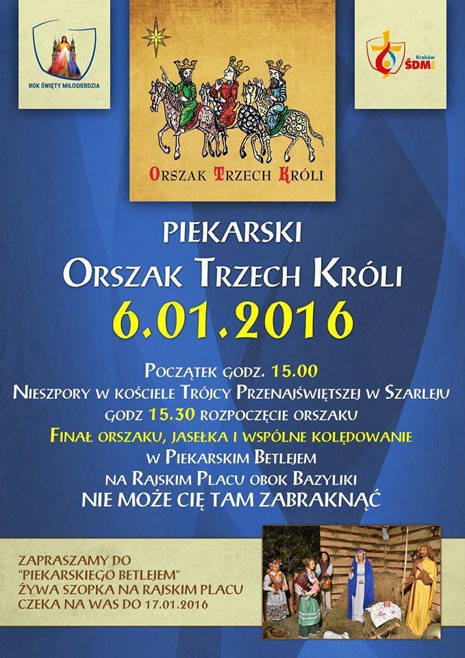 Już jutro po raz drugi ulicami Piekar Śląskich przejdzie Orszak Trzech Króli. Tym razem uczestnicy spotykają się przy kościele Trójcy Przenajświętszej w Szarleju, skąd o 15.30 wyruszą do piekarskiego Betlejem przy Bazylice. Orszak będzie przybliżał uczestnikom historię Objawienia Pańskiego – będą korony i śpiewniki kolędowe, które będą bezpłatnie rozdawane. Każdy może ubogacić Orszak w ten jedyny i niepowtarzalny wieczór np. występując w przygotowanym przez siebie stroju nawiązującym do tradycji jasełkowej. Zapraszam i proszę o wyrozumiałość kierowców – bo będą drobne utrudnienia drogowe.