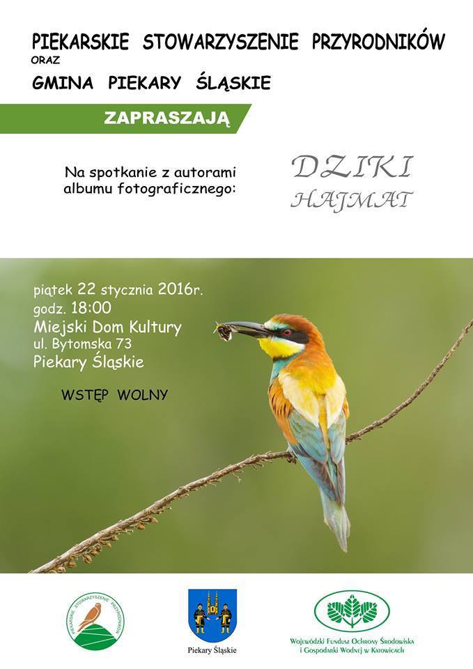 O niezwykłych i unikalnych walorach przyrodniczych Piekar Śląskich, które dosłownie toną w zieleni opowiedzą dziś piekarscy przyrodnicy, podczas promocji niezwykłego albumu “Dziki Hajmat”. Piękno otaczającej nas przyrody zostało uchwycone na kliszy i przedstawione w przepięknym albumie z dużymi, barwnymi fotografiami różnych autorów. Zapowiadałem to wydawnictwo na blogu (czytaj tutaj), a dziś zapraszam na spotkanie promocyjne: godz. 18.00 – Miejski Dom Kultury. Wstęp wolny.