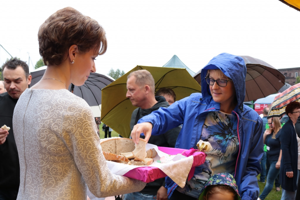 Setki mieszkańców w wielobarwnym korowodzie, ciekawie udekorowane domy, tańce ludowe, duża dawka dobrej zabawy zaserwowana przez kabaret i tłumy na parkiecie. Na zdjęciu prezydent Sława Umińska-Duraj dzieląca się chlebem z mieszkańcami.