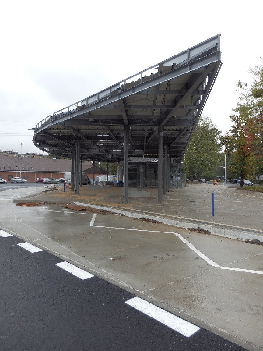 Tak było serio w projekcie konkursowym, że taki wielki dach, a budynek taki mały ? Na oko przypuszczam, że perony za krótkie na przeguba tak jak w TG. I obym się mylił, że stanowiska postojowe za wąskie, bo tu już będzie bardzo słabo.