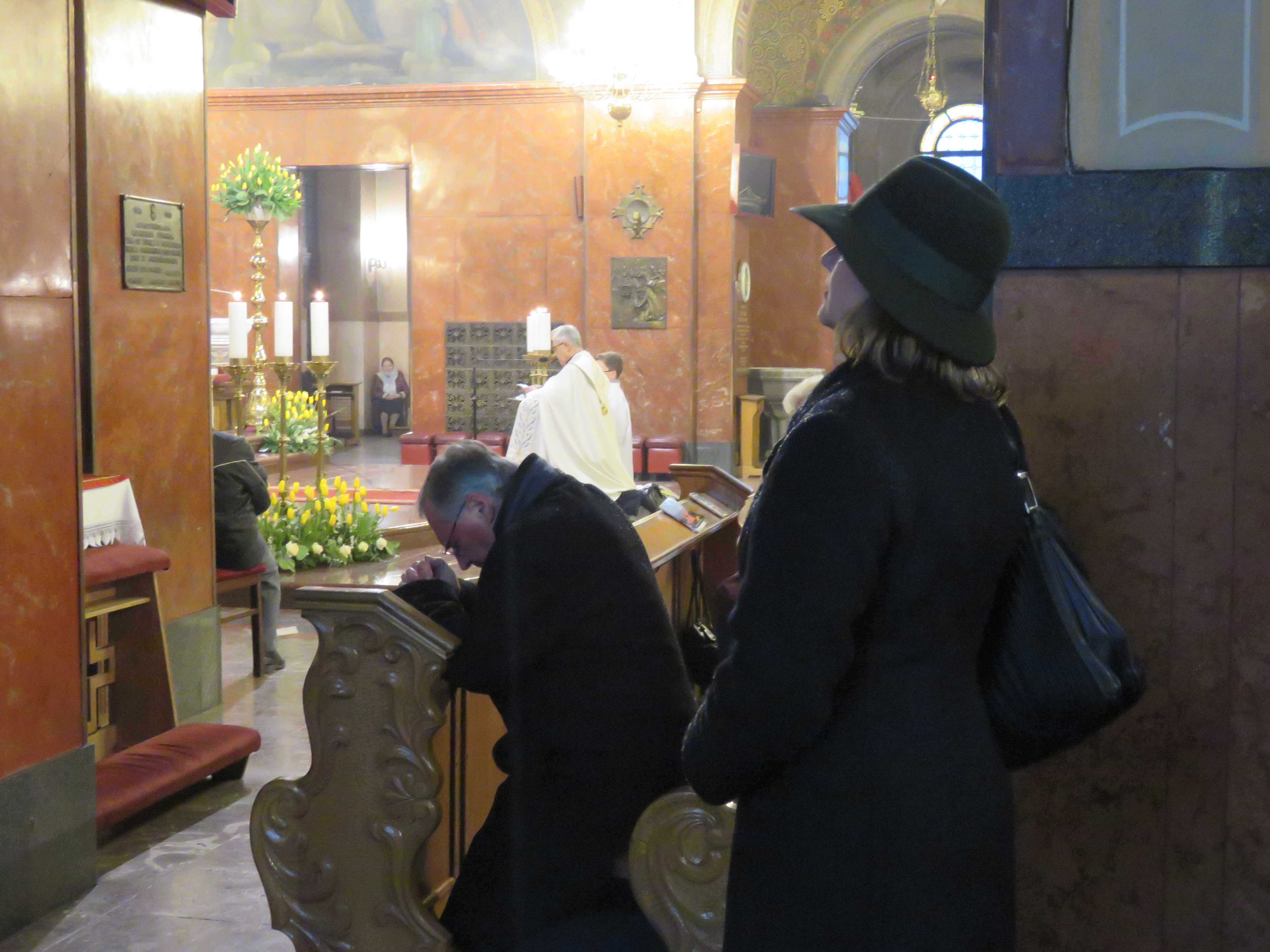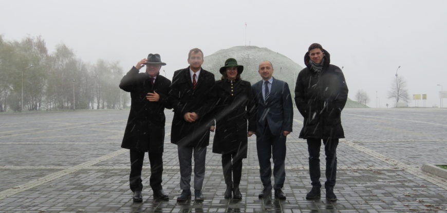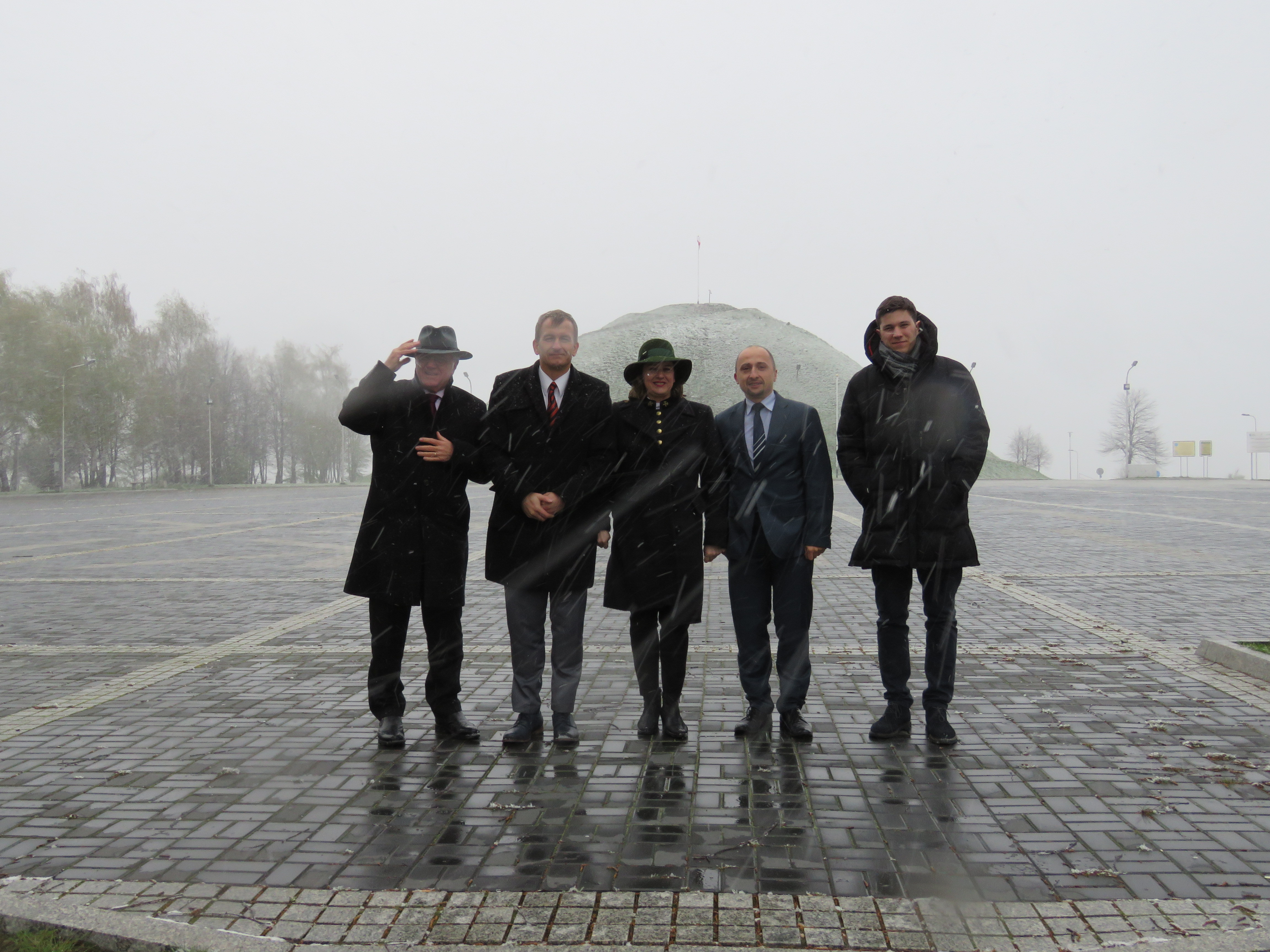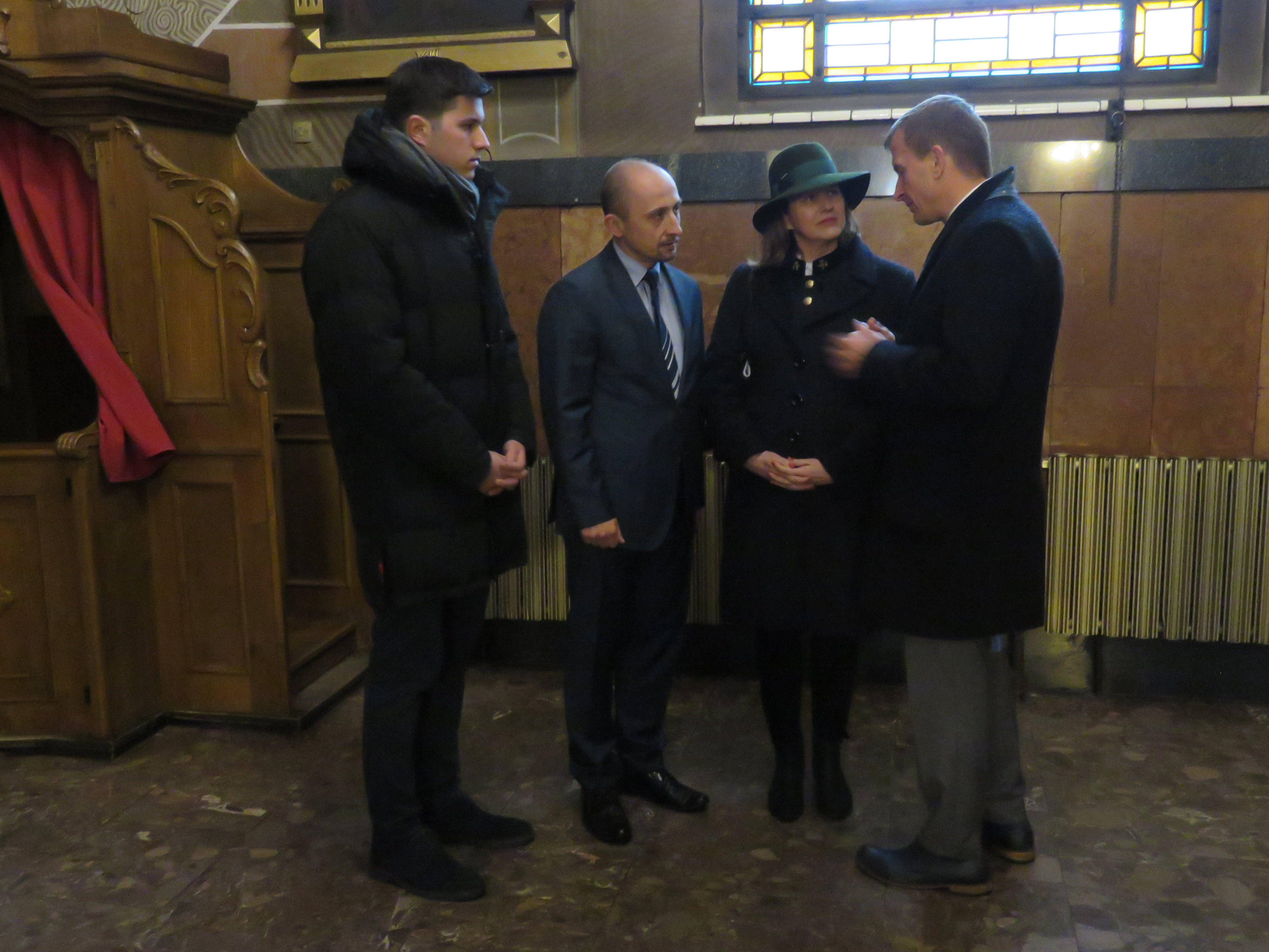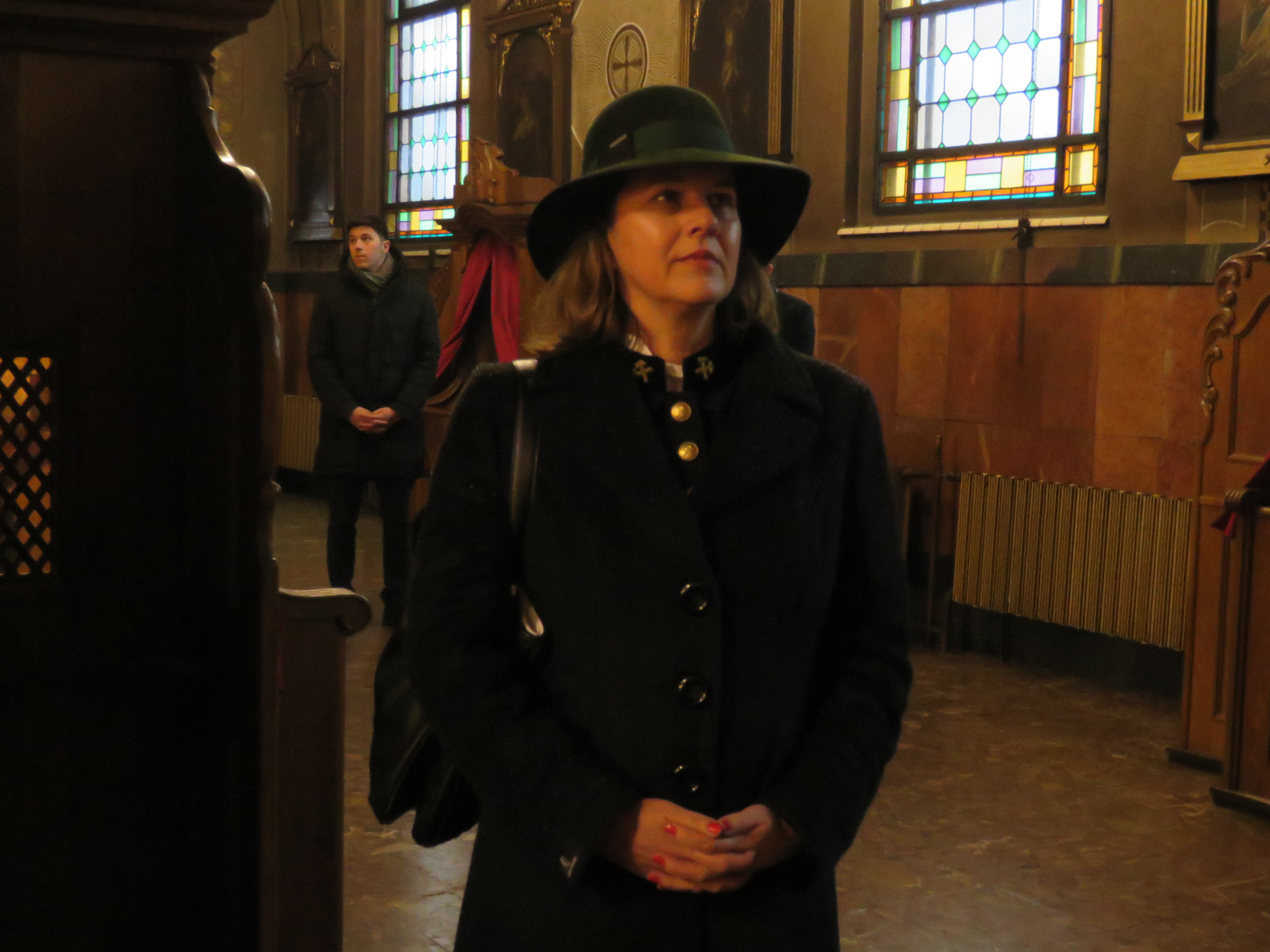 Pani Ambasador wraz z mężem i synem odwiedziła piekarską Bazylikę i niezrażona warunkami pogodowymi wybrała się także na wzgórze kalwaryjskie i piekarski Kopiec Wyzwolenia. O historii sanktuarium oraz miasta opowiadał Dariusz Gacek (stąd także wizyta w Miejskim Centrum Informacji i Turystyki).
