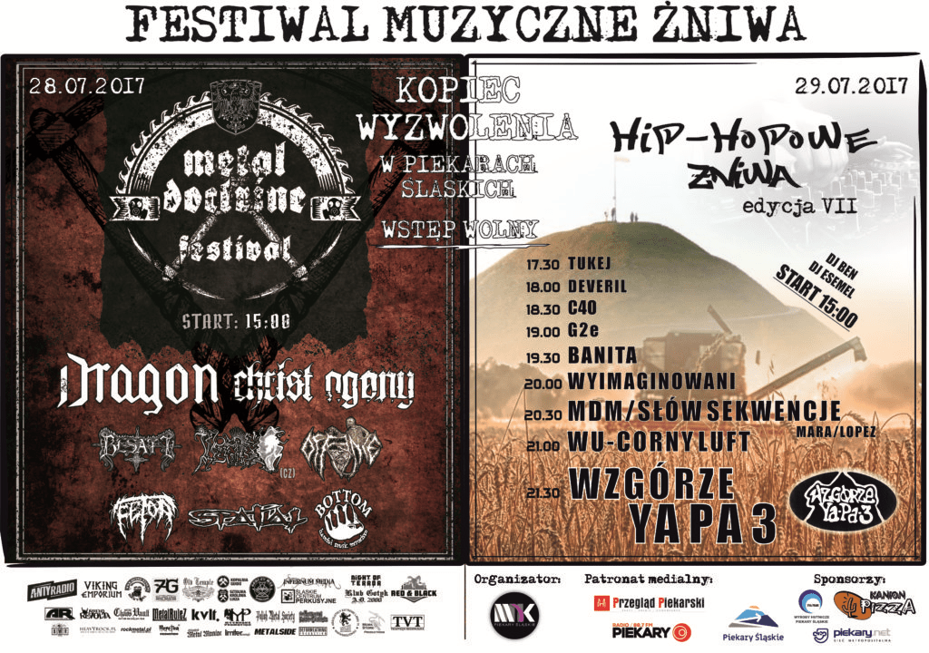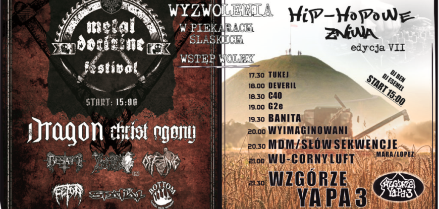 Czekają nas dwa dni wspaniałej zabawy pod Kopcem Wyzwolenia w Piekarach Śląskich! To będzie muzyczna gratka dla fanów mocnego, metalowego brzmienia oraz dla miłośników hip-hopu.