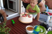 Dziś Maciuś Turzański postanowił skończyć dwa latka. I jak się domyślacie skończył. Dorosły facet. Goni starszego brata Krzysia, który w niedzielę skończy lat dziewięć. Staruchy dwa! Ponieważ jesteśmy wielkimi fanami ślimaków – torcik też miał taki motyw.