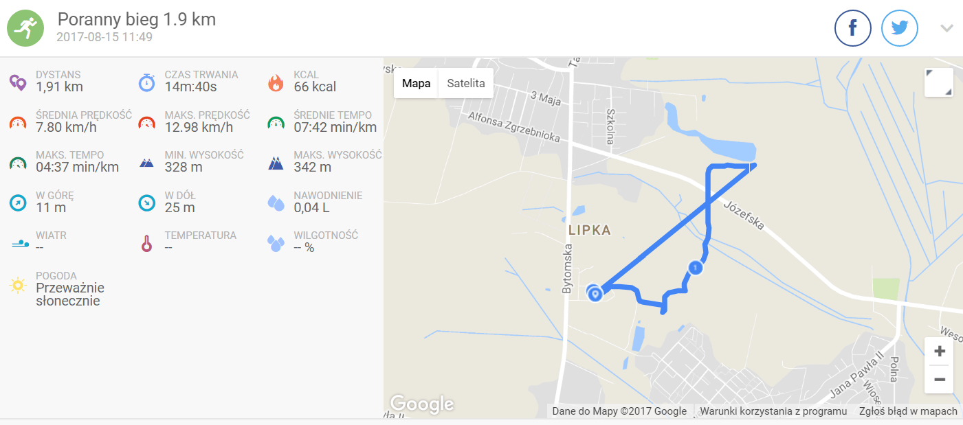 Szkoda, że endomondo się zawiesiło, bo wynik byłby interesujący. Z niemal 5 km, które “przebiegłem” zapisały się dwa i teoretycznie nie wygląda to strasznie. Ale uwierzcie mi, z każdą chwilą i z każdym kolejnym metrem było gorzej.