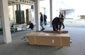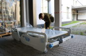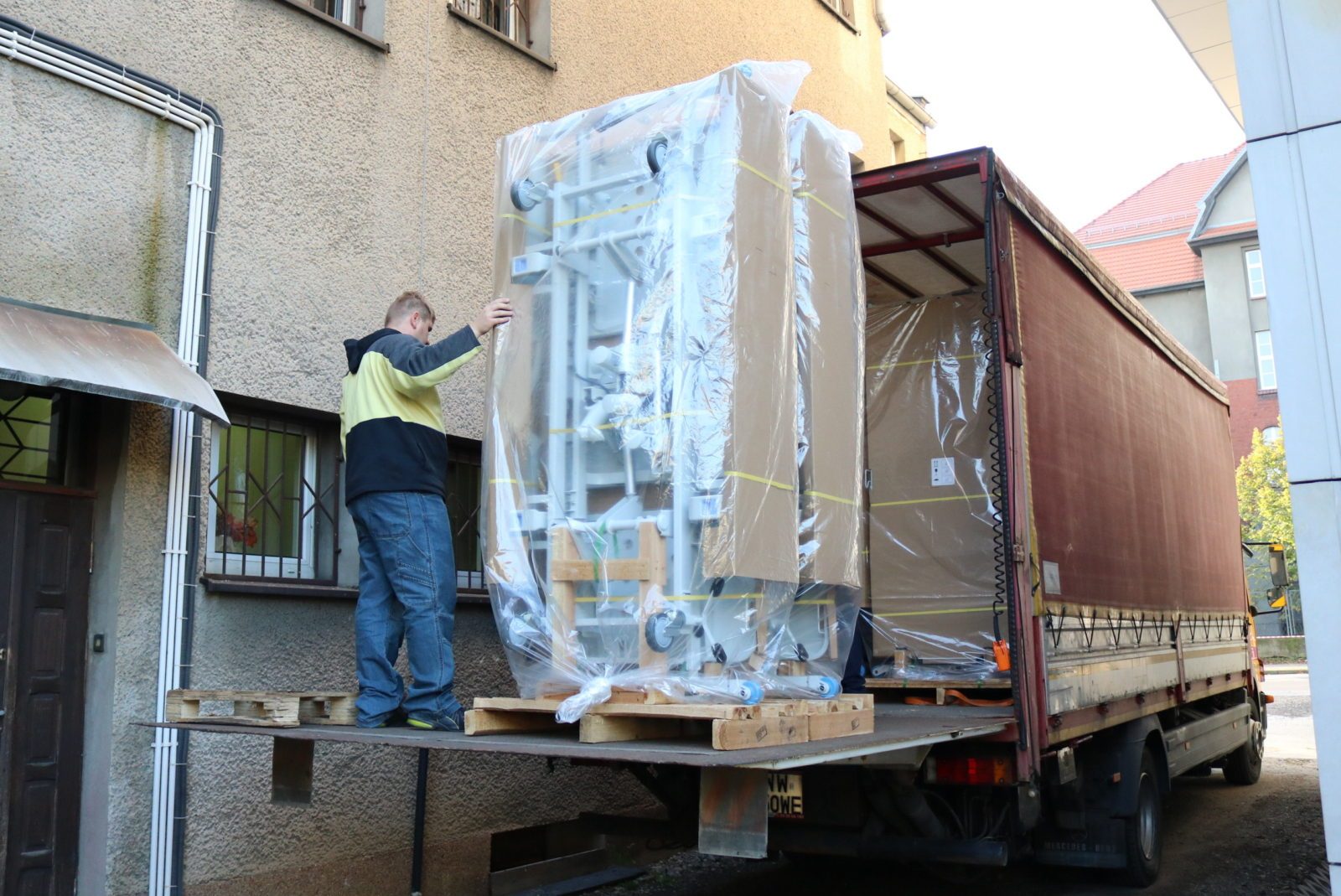 Dziś przyjechał pierwszy transport wyposażenia do nowego budynku Szpitala Miejskiego. Na początek – łóżka. Kolejne transporty przejeżdżać będą regularnie.