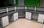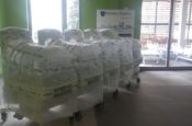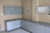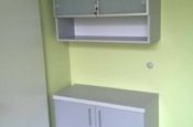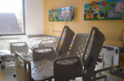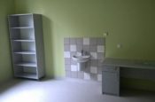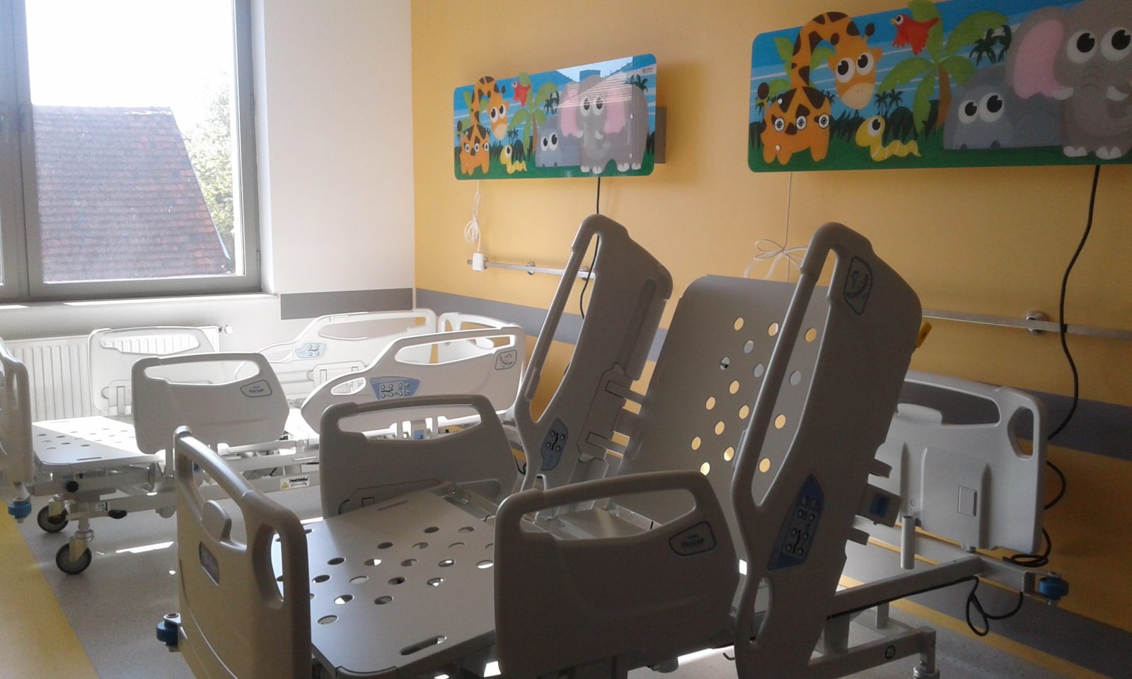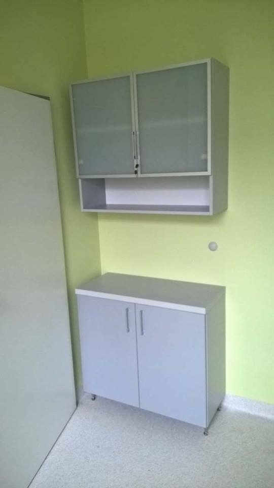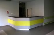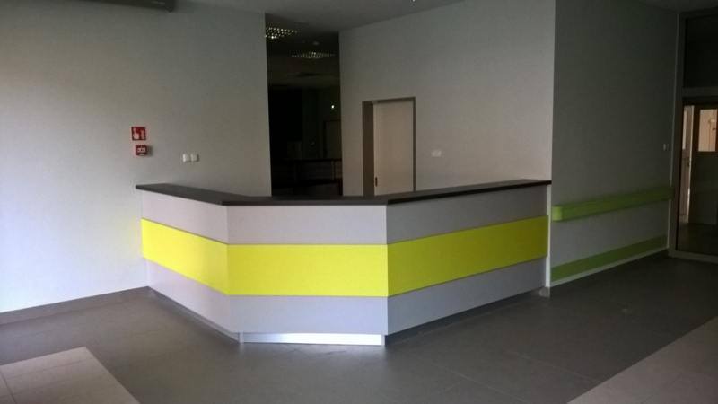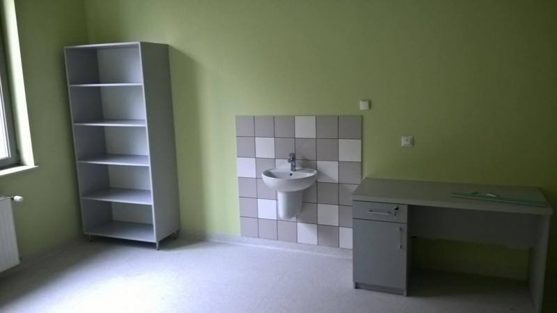 Sprzęt regularnie jest dostarczany do placówki, ale w tej chwili montowane są już meble i coraz więcej “widać’ we wnętrzach. To zielony parter – w kolejnych dniach meblujemy kolejne piętra.