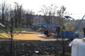 Został już także wylany beton i przygotowane podłoże dla rolkarzy, deskorolkowców i miłośników podobnych zabawek. W pierwszej chwili wygląda jak… lód. Taki gładki. Mam nadzieję, że będzie dobrze się jeździć. Aż mnie kusiło, żeby sprawdzić, ale nawierzchnia jest zbyt świeża i… trzeba poczekać.