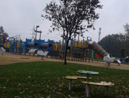 Są urządzenia dla dzieciaków poruszających się na wózkach, jest ławka z przewijakiem dla maluszków, ław...