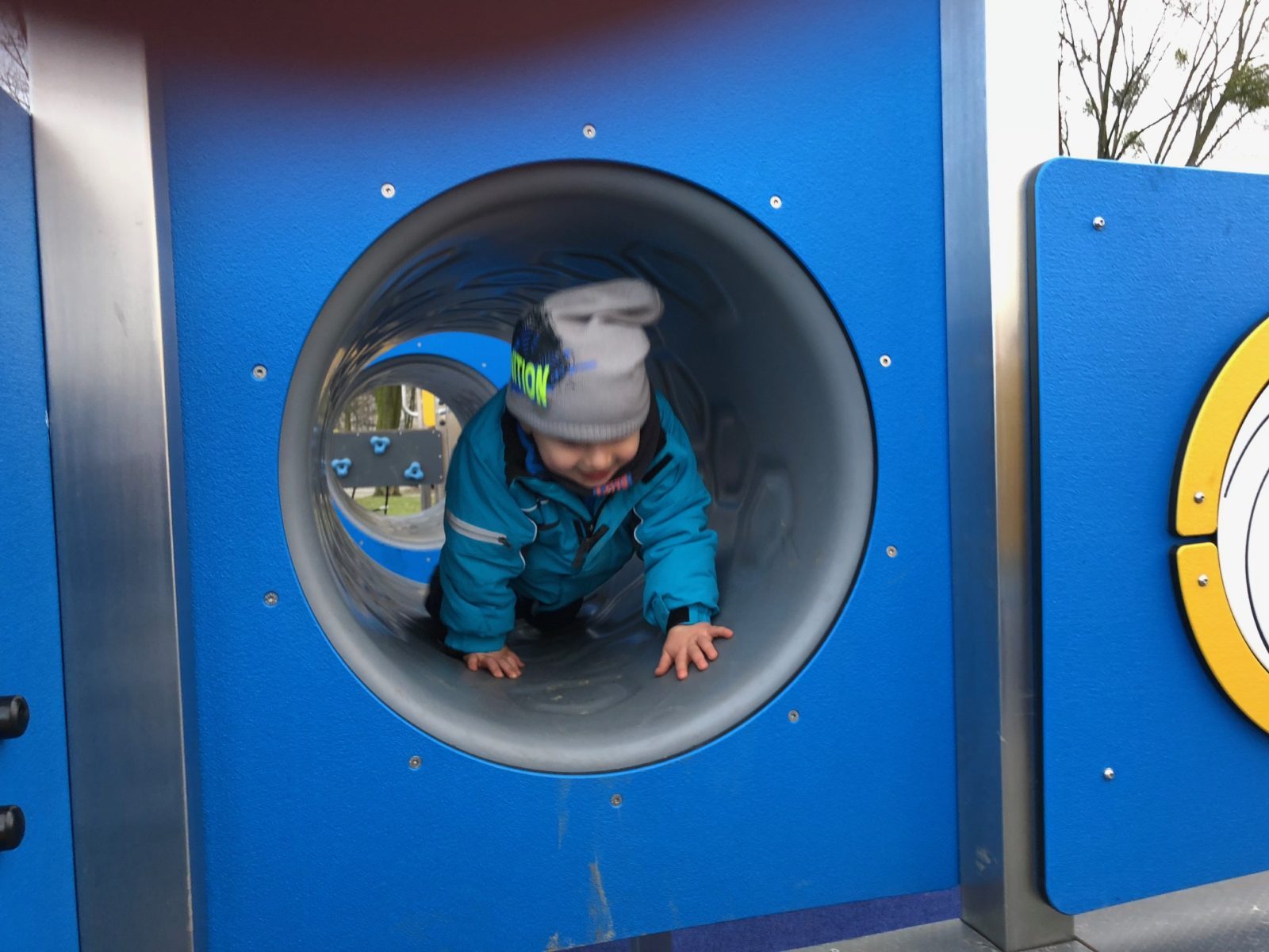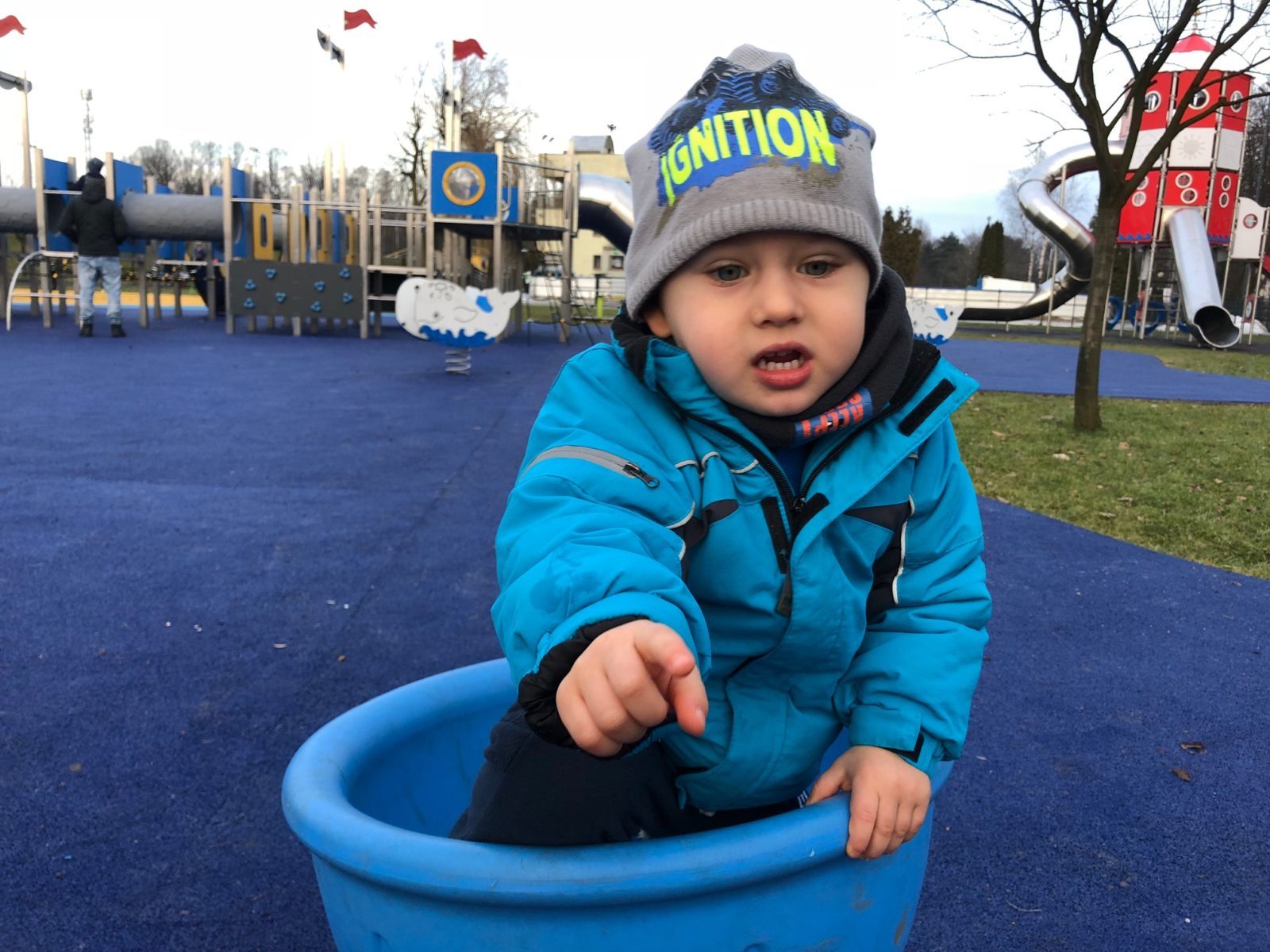 Krzyś sprawdził street workout, Maciek w tym czasie testował zjeżdżalnie. Potem razem zmagali się z parkiem linowym. Junior pobiegł na latarnię morską, a najmłodszy sprawdził trampolinę. Do pełni szczęścia brakowało słońca. No i wszyscy najchętniej zmieniliby ciuchy na letnie.