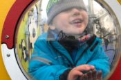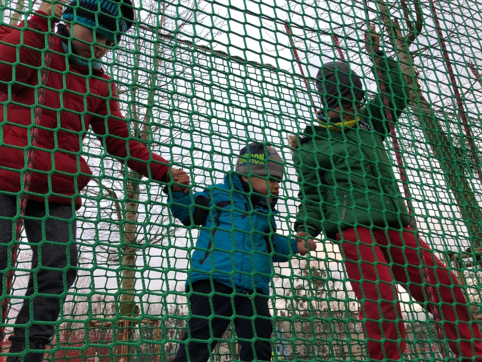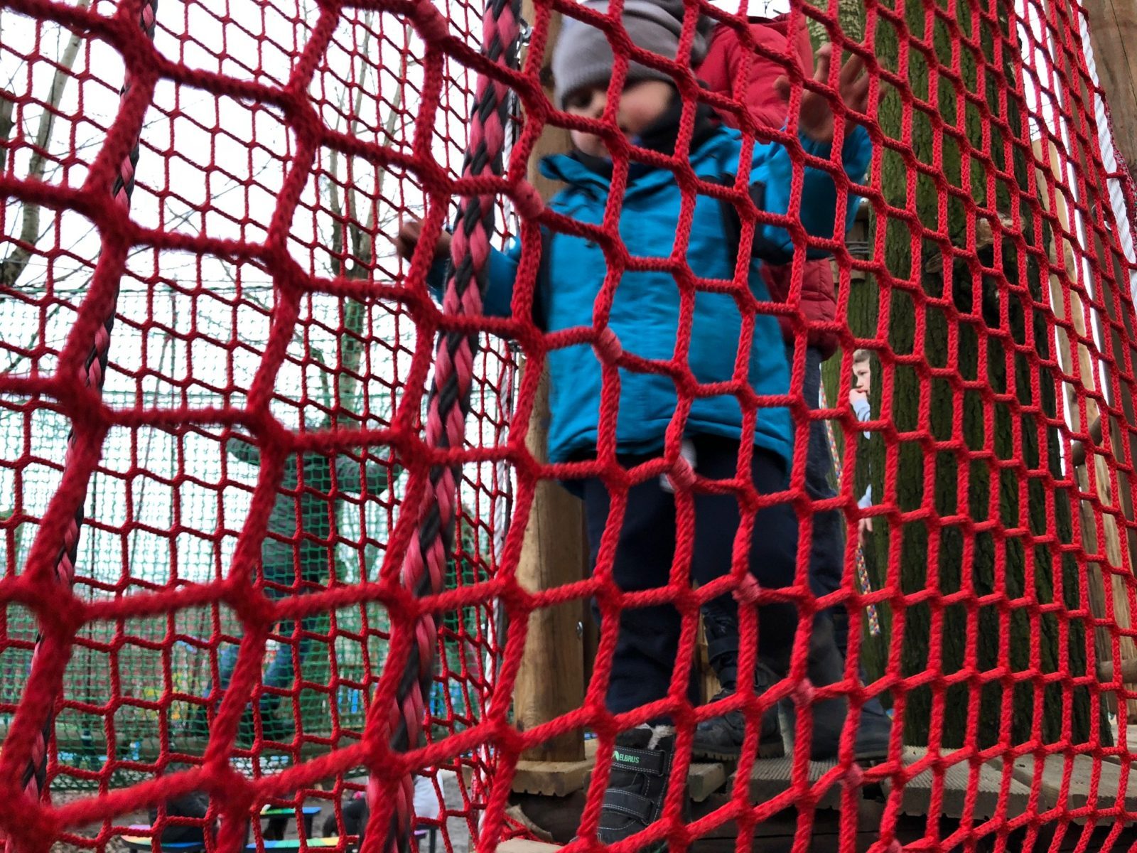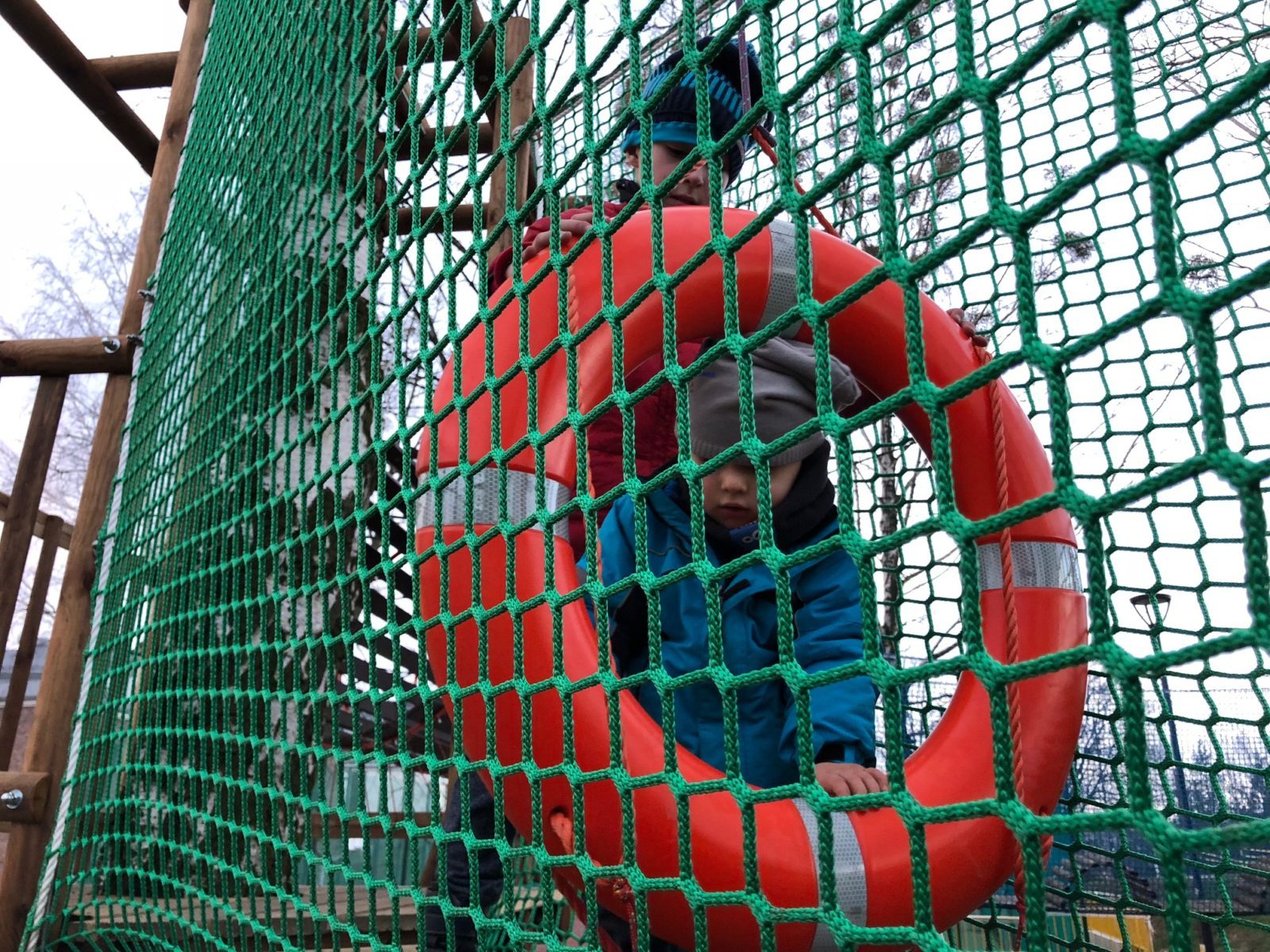 Zobaczcie zdjęcia. Na pirackim placu zabaw armagedon. Zabrakło trawy z rolki (będzie na wiosnę) i jest straszne błoto. Dzieciaki jakoś nie zauważyły. Takich tłumów to tutaj nawet latem nie było. Boję się myśleć, jak to wszystko będzie funkcjonowało wiosną. Jest styczeń, ale aura złoto-jesienna, więc dzieciaki przetestowały. Ocena pozytywna!