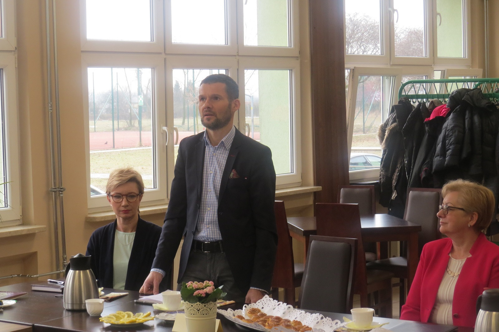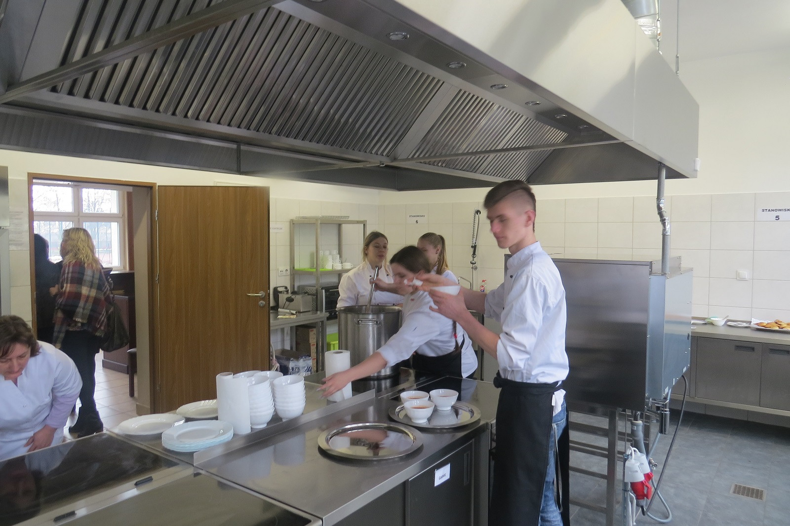 W trakcie prelekcji uczestnicy mogli się częstować cynamonowymi ciasteczkami wypiekanymi przez uczniów. Natomiast po zwiedzeniu budynku szkoły, który jest po generalnym remoncie, zostali uraczeni pomidorowym kremem z maskarpone, podawanym z czosnkowymi grzankami. To dzieło uczniów Technikum nr 2 przy ZSTZ, którzy kształcą się w zawodzie technik żywienia i usług gastronomicznych i oczywiście ich nauczycieli zawodu.