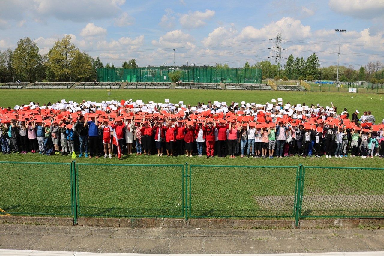 W piątek rano z ułożeniem “żywej” flagi zmierzyli się uczniowie Miejskiej Szkoły Podstawowej nr 14 w Brzezinach Śląskich, wspierani przedszkolakami z Miejskiego Przedszkola nr 12. Odśpiewany hymn, uroczysty apel.