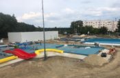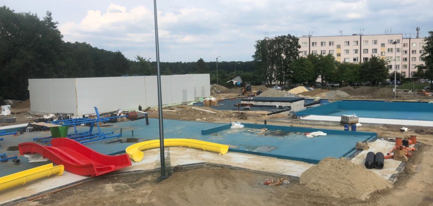 Został wyburzony stary i wybudowany nowy budynek, w którym znajdą się szatnie, prysznice i toalety, a także pokój ratowników, magazyn i część technologi. Boiska do siatkówki plażowej są już prawie gotowe, widać powstający taras dla opalających się – słowem inwestycja nabiera ostatecznego kształtu.