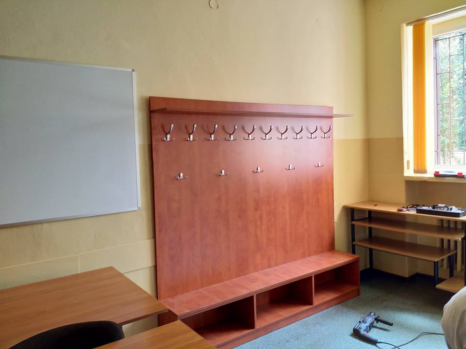 Kilka fotek z realizacji “inwestycji” wewnątrzszkolnych- już jest oświetlenie klasy przedmiotowej… pokój nauczycieli wzbogacił się o garderobę na okrycia wszelakie! Sponsor miły dostarczył wyposażenie i akcesoria związane z “tworzeniem napojów” typu kawa i …reszta!