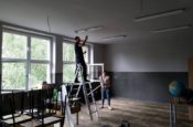Natalia Ciupińska-Szoska wraz z mężem Łukaszem i Danielem Pliszką oraz niestrudzonymi pracownikami szkoły odnowili dużą salę lekcyjną. Satysfakcji, jaką otrzymujemy za takie akcje nie da się wycenić. To jest pomysł na wakacje! Myślę, że trud wynagrodzi fakt, że dzieciakom się spodoba.