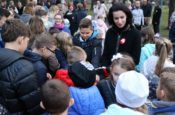 Licznie zgromadzone dzieci czekały niecierpliwie na salwę honorową, po której zebrały łuski z karabinów. Na pamiątkę uroczystości.