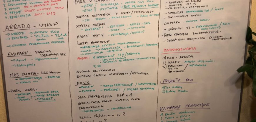 Tablica wyczyszczona i “przepisana” na nowo, a na niej najważniejsze tematy tego roku. Jestem rozczarowany, bo to w zasadzie kończenie inwestycji już rozpoczętych i dopinanie spraw dawno sygnalizowanych. Z drugiej strony to przedsięwzięcia duże i wymagające sporych nakładów.
