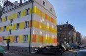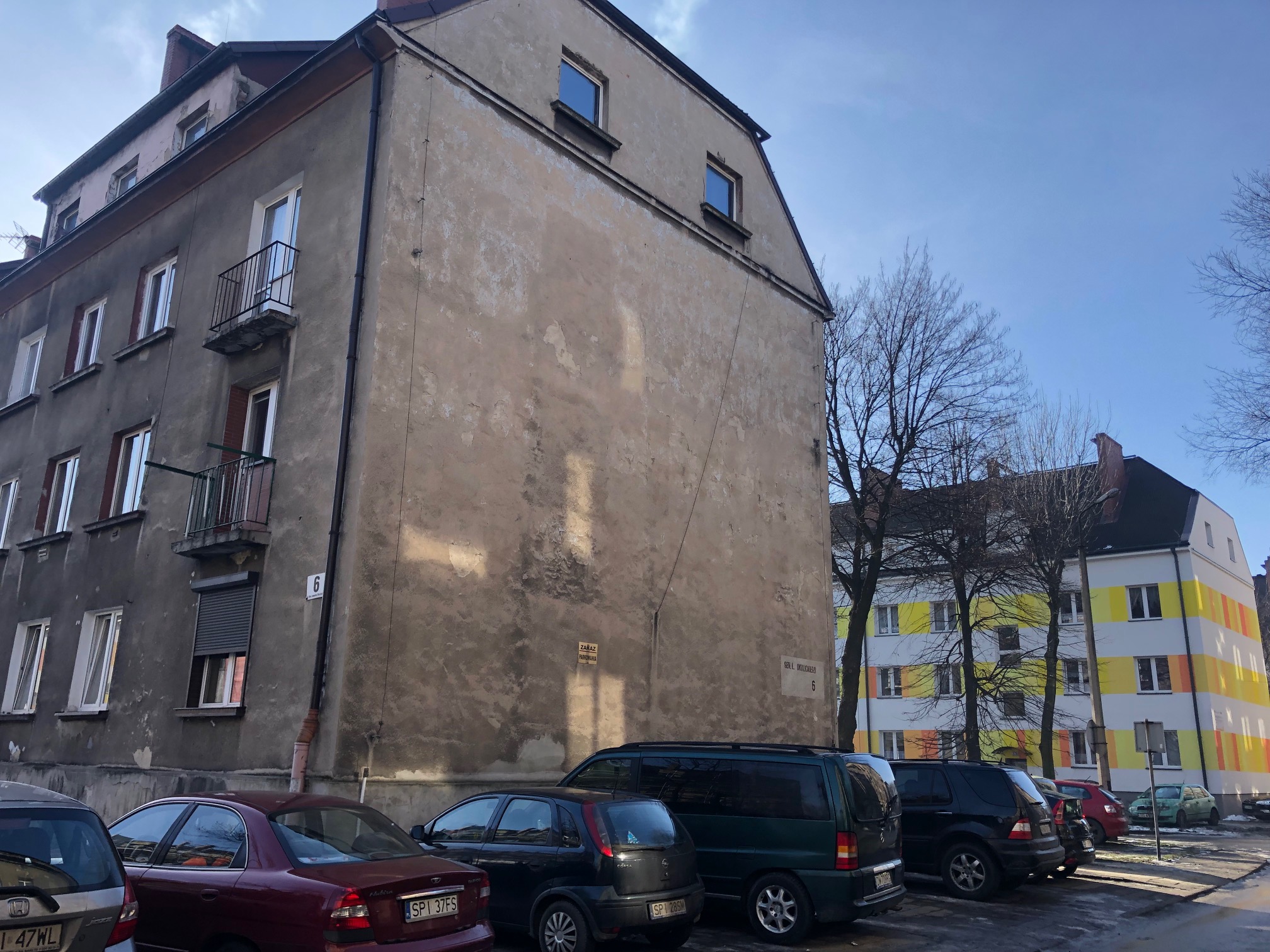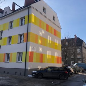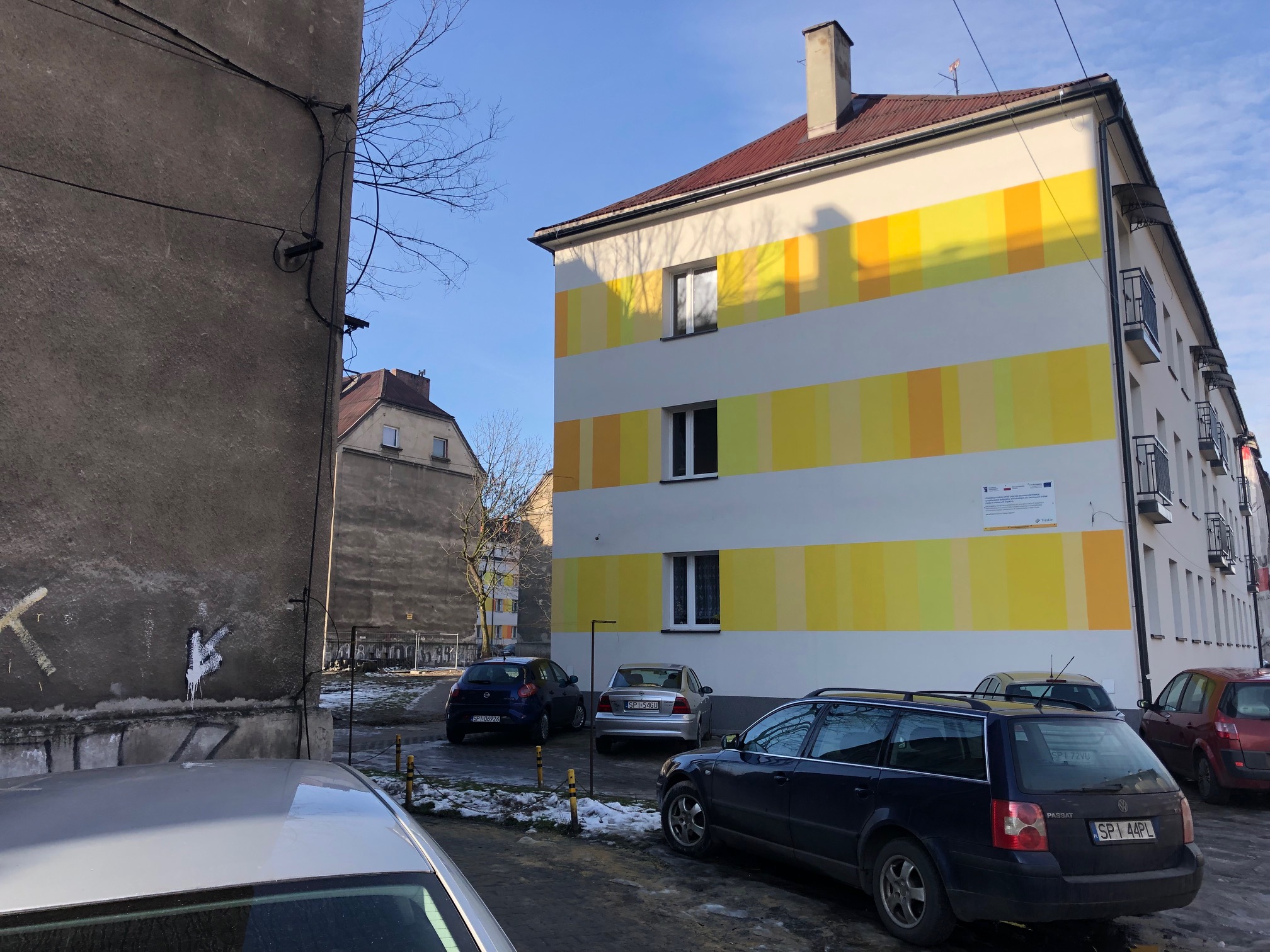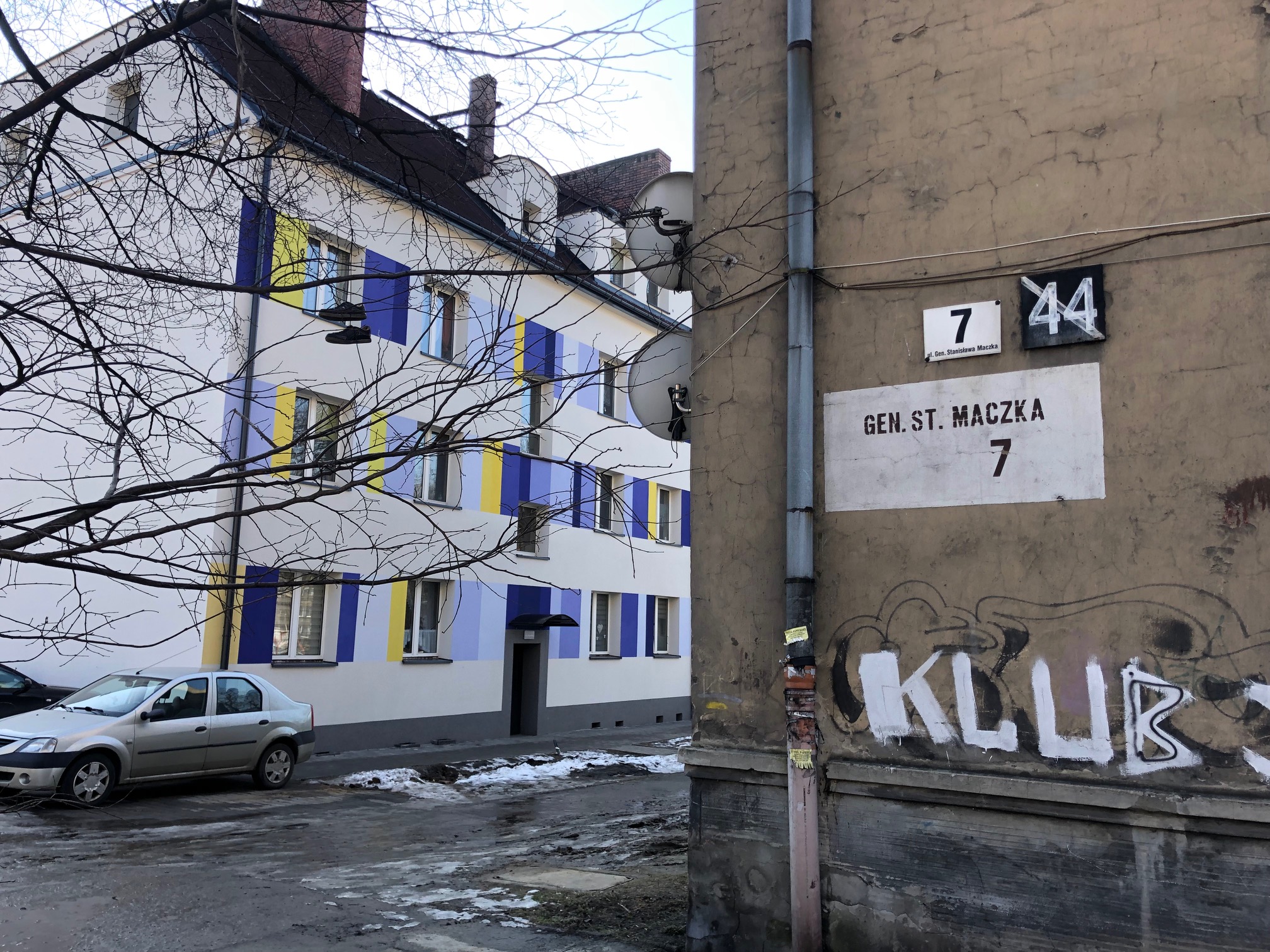 Ja chyba nie bardzo się znam na charakterach, historii i klimacie, bo mój ocieplony, kolorowy budynek podoba mi się znacznie bardziej. Aż gęba się śmieje na jego widok. Taki powiew optymizmu w tym szarym, ponurym i brudnym miejscu. Nie mieszkamy w skansenie! Czekamy na efekt końcowy.