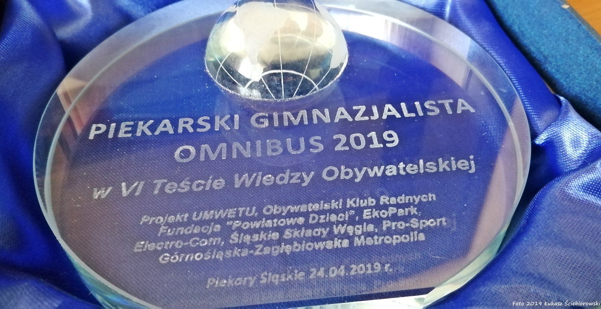 Piekarski Gimnazjalista Omnibus to konkurs wymyślony i od lat realizowany przez radnego Łukasza Ściebiorowskiego. Systematycznie, konsekwentnie pracuje nad jego rozwojem jest także autorem pytań. To taki nasz “człowiek orkiestra”. Kawał dobrej roboty!