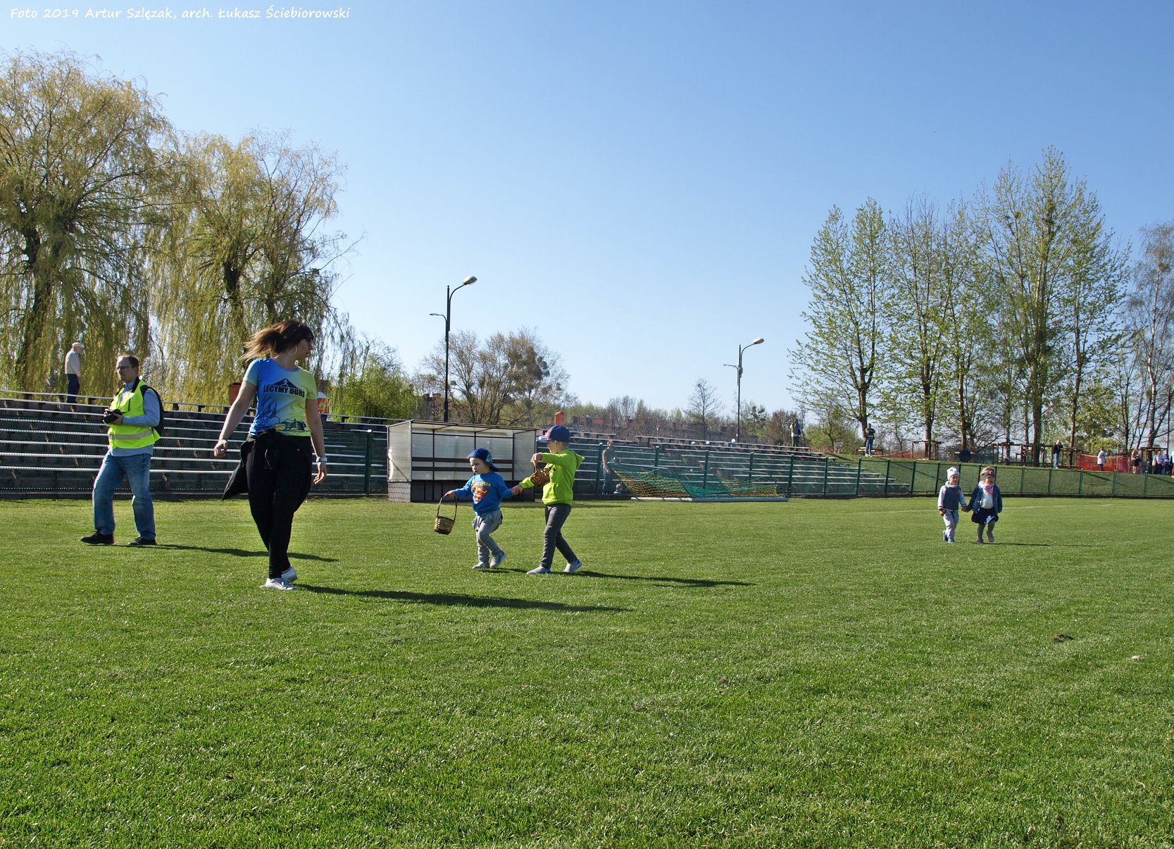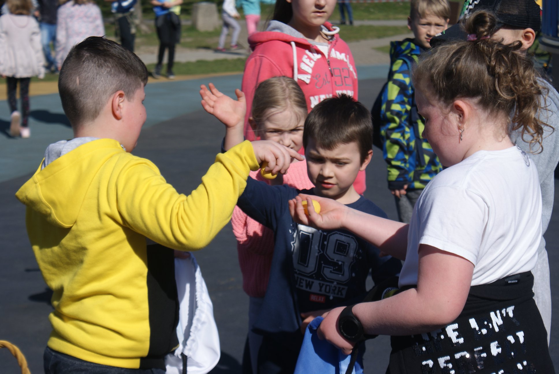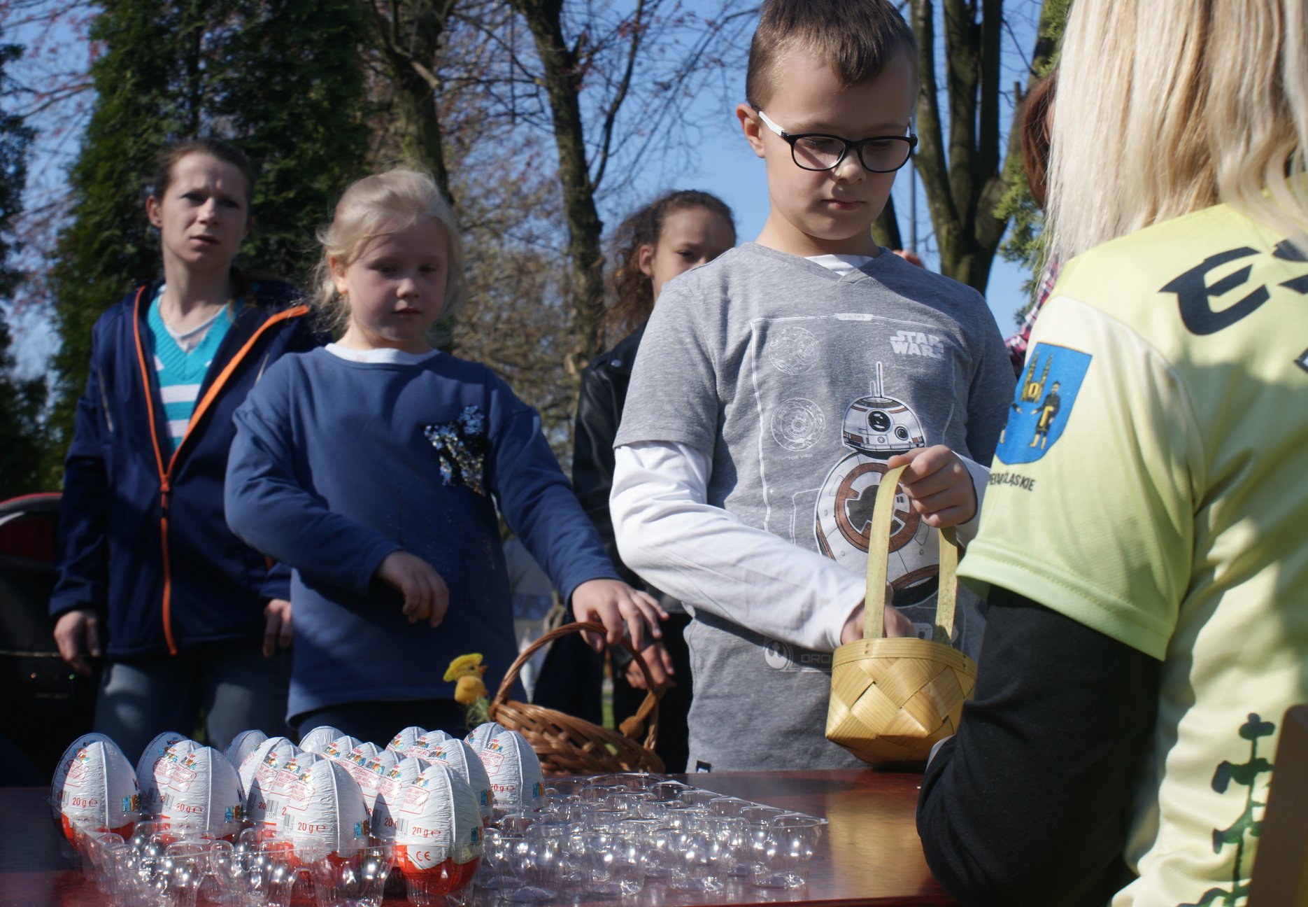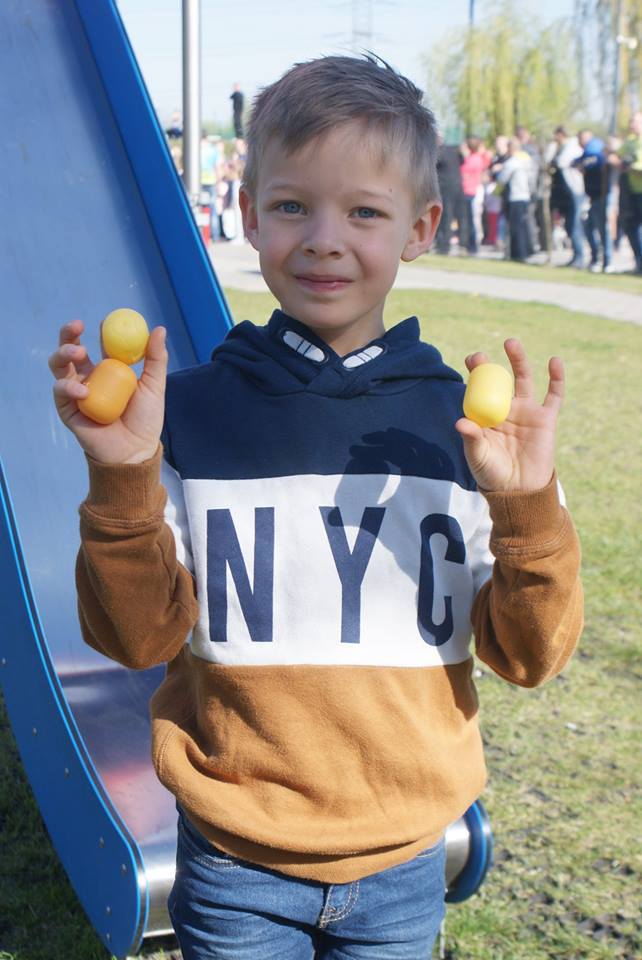 Szacujemy, że w zabawie wzięło udział ok. 400-500 dzieci, które nie kryły radości z poszukiwania czekoladowych niespodzianek. Dzieci zostały podzielone na dwie grupy wiekowe do lat 5 i do lat 10. Młodsze dzieci poszukiwały plastikowe jajeczka na płycie boiska, a starsze na terenie placu zabaw MOSiR. Większych zgrzytów nie było.