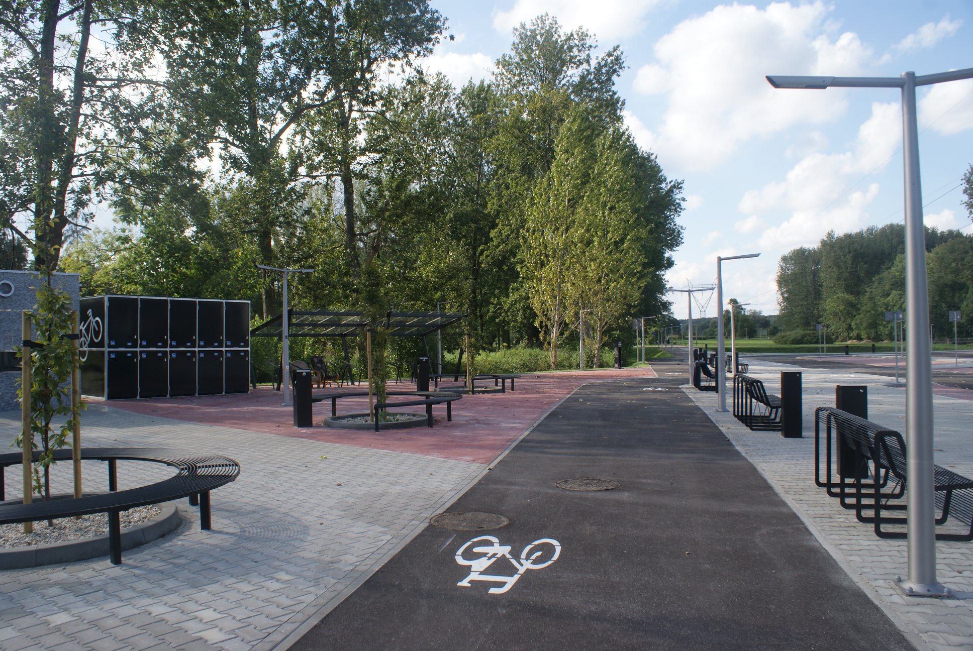 Centrum Przesiadkowe stanowić będzie także łącznik pomiędzy Starym i Nowym Osiedlem Wieczorka. Oświetlenie terenu zapewniają latarnie – oczywiście ledowe, które sprawdzają się znakomicie. Poza dziesiątkami miejsc parkingowych są także stojaki na rowery, stacja naprawcza, toaleta, ławeczki i odrobina zieleni.