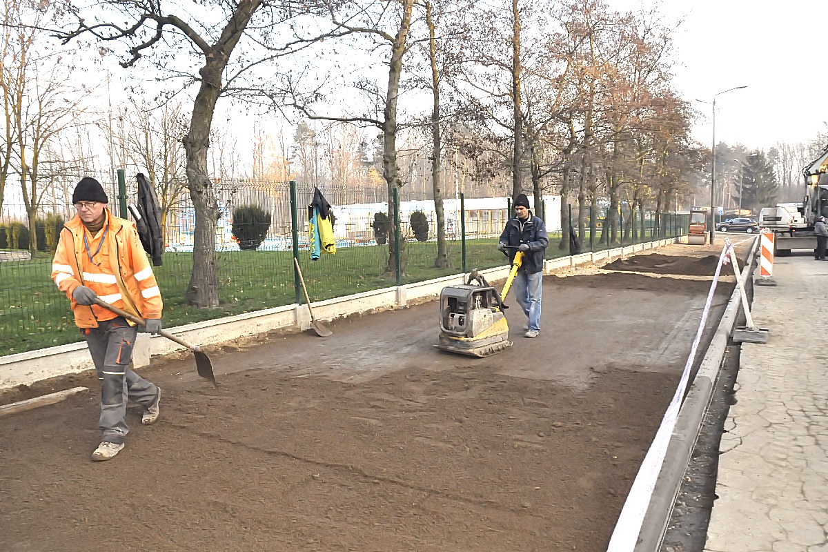Na samej ulicy Olimpijskiej trwa utwardzanie nawierzchni wzdłuż ogrodzenia MOSiR-u. Zapewni to kolejne 28 nowych miejsc parkingowych, w tym dwa dla osób niepełnosprawnych.
