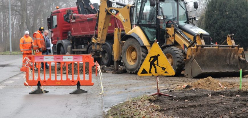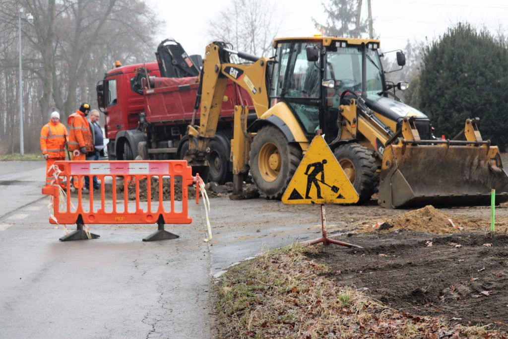 Kolidujące z przebiegiem drogi drzewa zostały już wycięte, usunięto już starą nawierzchnię z „trylinki”. Wykonano również przekopy kontrolne istniejącego uzbrojenia pozwalające wykonać dalsze roboty związane z wykonaniem koryta drogi. W tej chwili powstaje kanalizacja deszczowa.