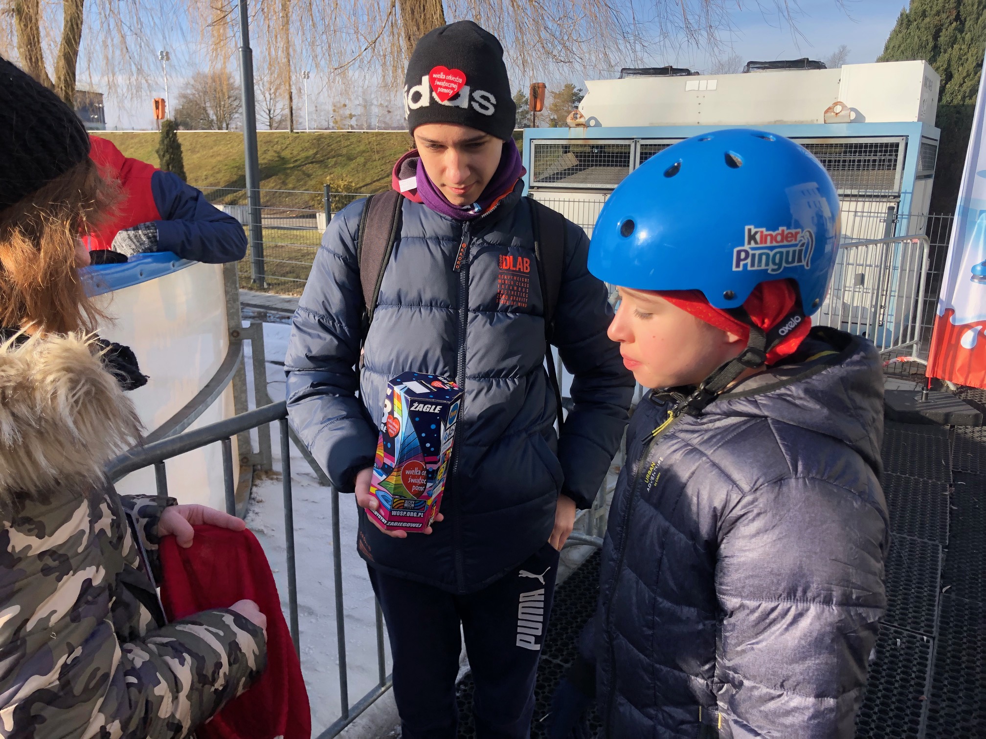 Czasy się zmieniły, ale pomoc zawsze jest potrzebna. Mój młodszy syn Maciuś po raz pierwszy tak naprawdę świadomie wrzucał pieniądze do puszki. Z bratem! Wolontariuszy spotkaliśmy na lodowisku MOSiR.