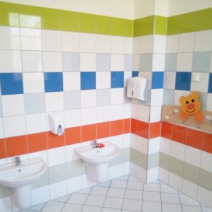 Wyremontowane zostały łazienki wraz z wymianą instalacji. Dzisiaj są śliczne i kolorowe. Jestem pewny, że dzieciakom się spodoba.