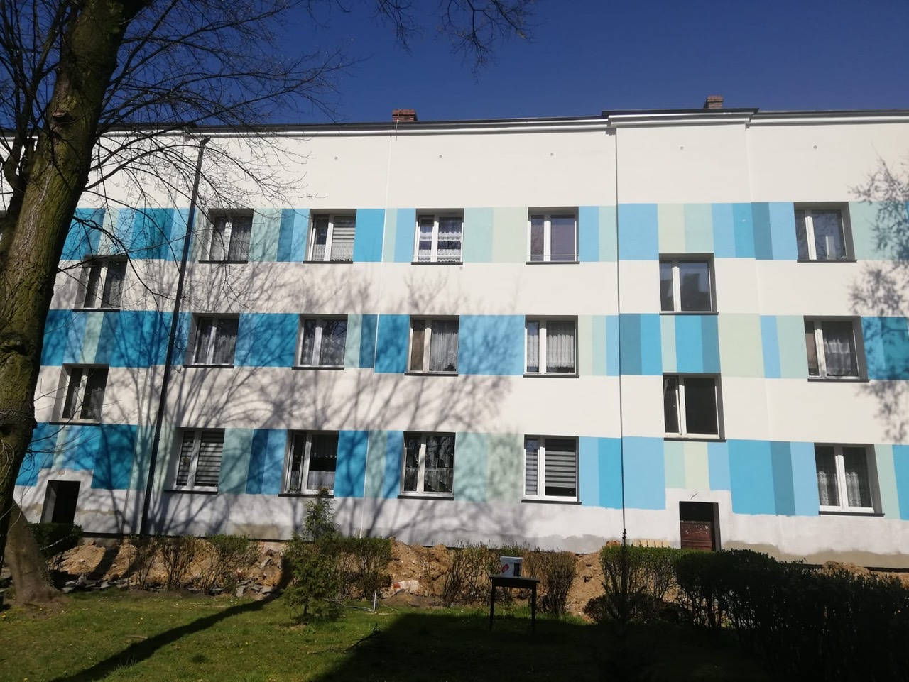 Zakład Gospodarki Mieszkaniowej mimo epidemii koronawirusa nie przerwał inwestycji i prowadzi prace termomodernizacyjne. Średni koszt dla jednego budynku wynosi ok. 800 tysięcy złotych. Prace te wykonywane są przez 4 wykonawców. Na osiedlu pojawiły się już nowe kolory (każda część osiedla ma swój kolor) – błękit i zielony. Ten ostatni będzie chyba moim faworytem.