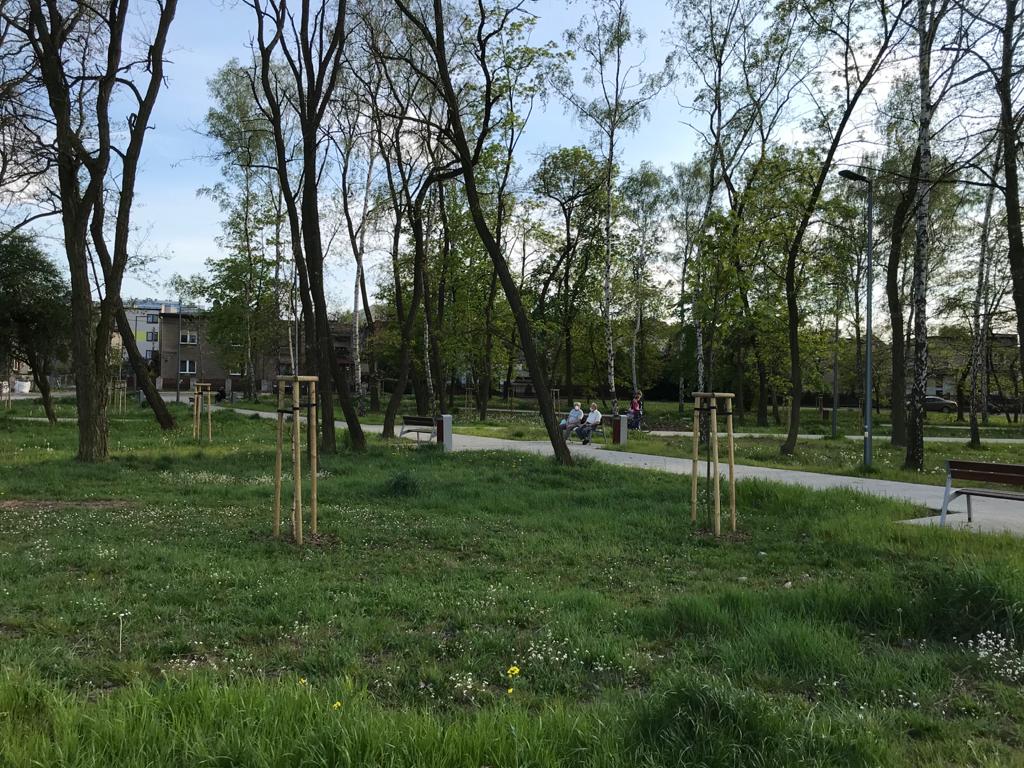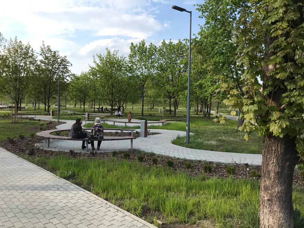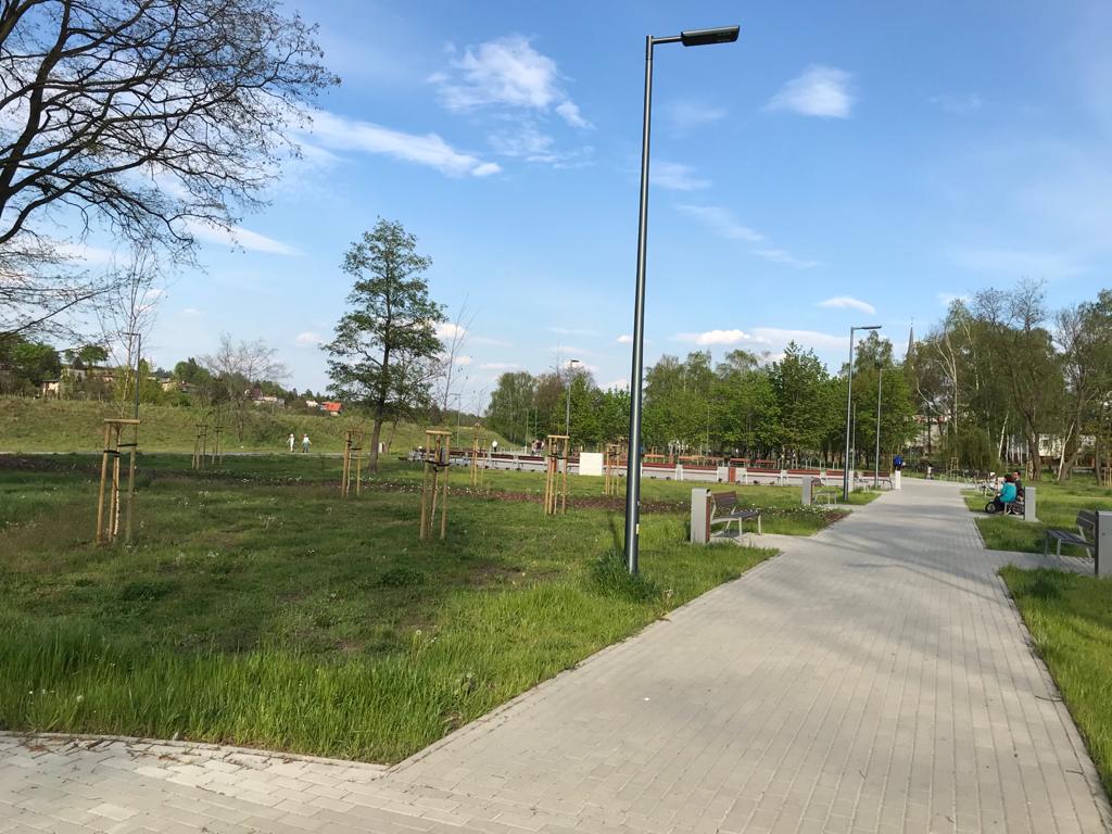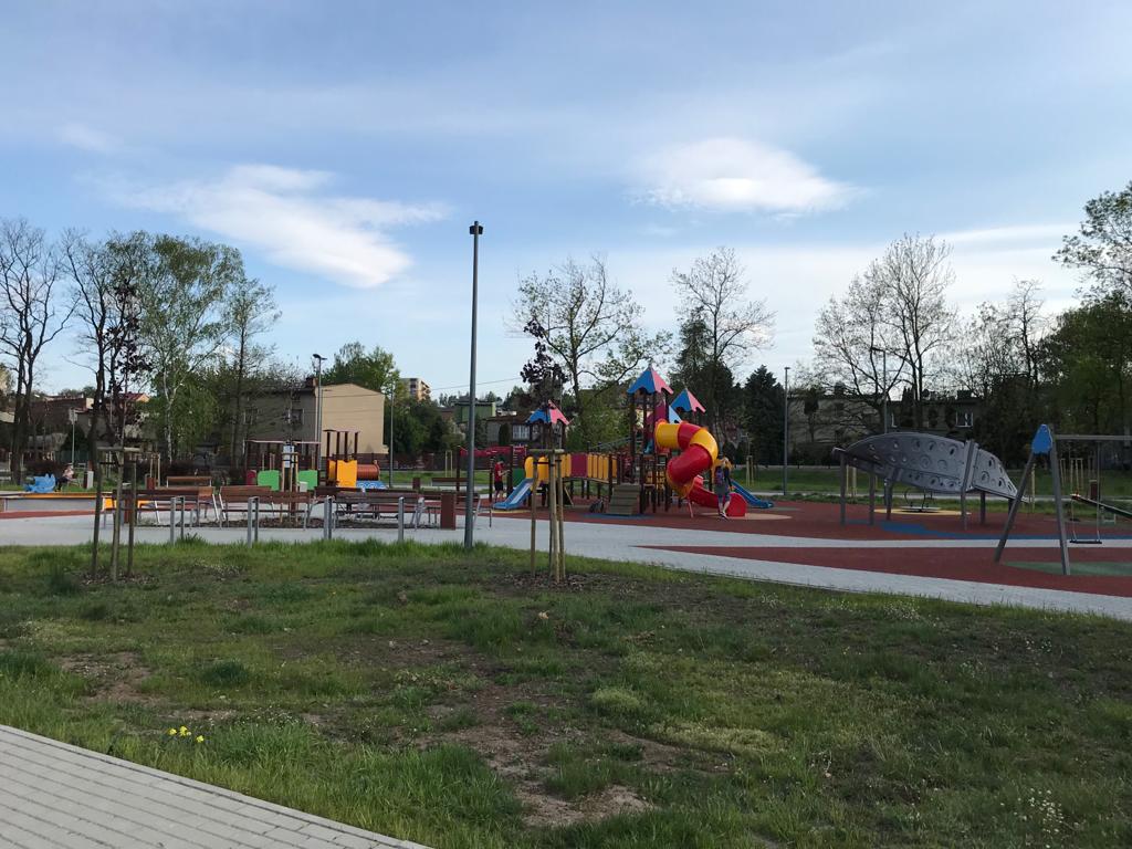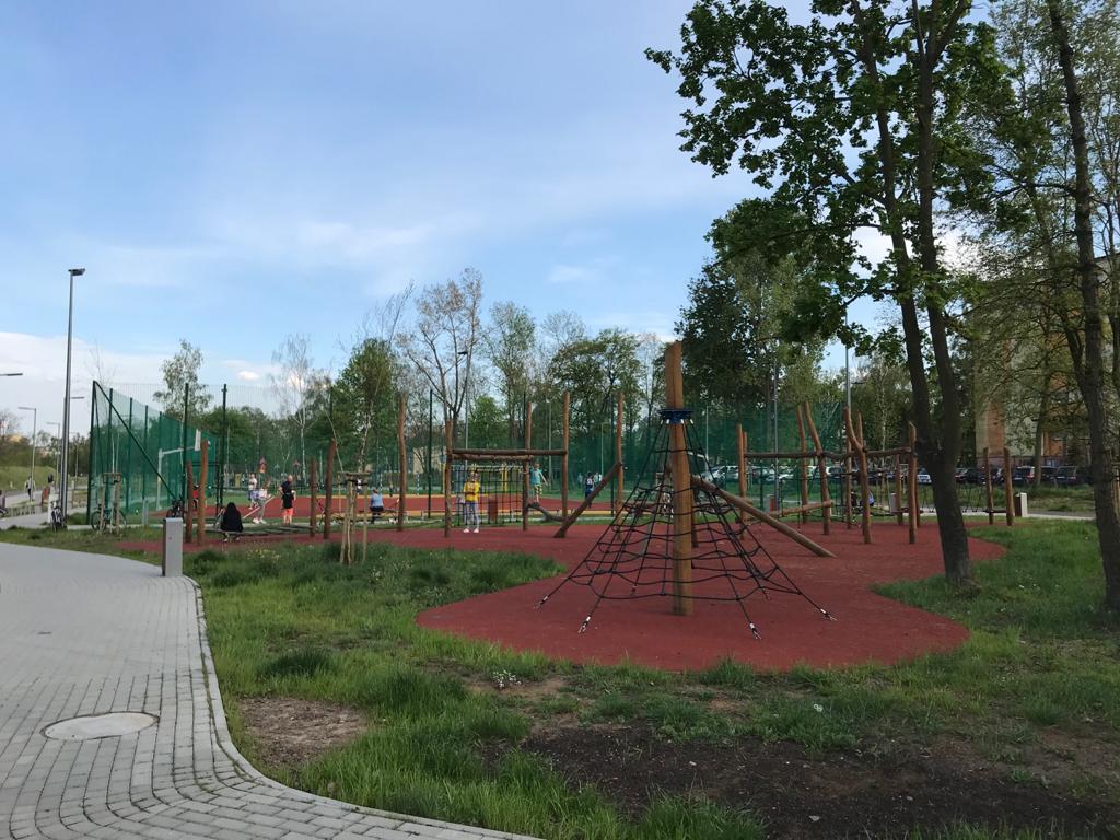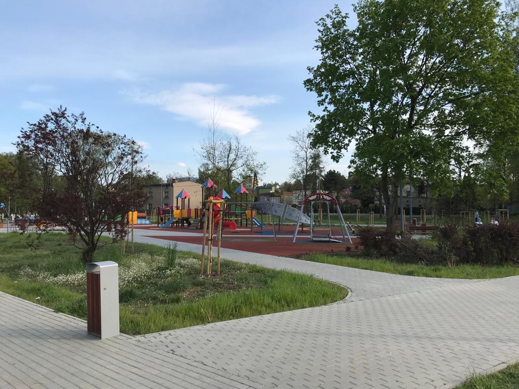 Park super ale są jeszcze braki które można poprawić. Wystarczy podpytać zainteresowanych rodziców że chodzi o ogrodzenie placu zabaw. Nie wleci tam bezpański pies i nie załatwi swej potrzeby a także nie będziemy ratować bawiące się dzieci przed nimi. Brakuje trochę cienia bo na razie to patelnia słoneczna i huśtawki mocno rozgrzane chyba że będziemy odwiedzać park jesienią.