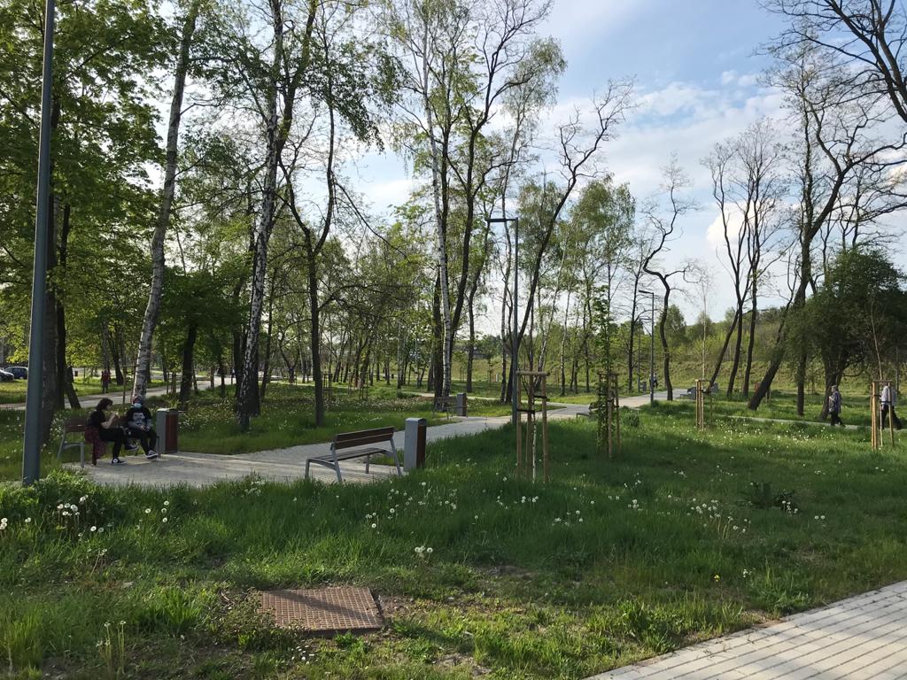 Do tego wszystkiego fontanna (niestety nie czynna z powodu epidemii), aleje spacerowe i ławeczki, na których można spokojnie usiąść. Mieszkańcy chętnie korzystają z tej możliwości.