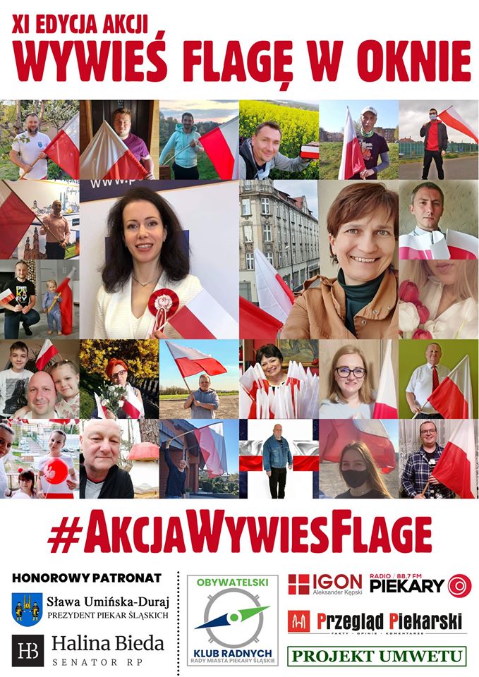 Akcja “Wywieś flagę w oknie” ma w Piekarach Śląskich wieloletnią tradycję. W tym roku organizowana jest jej 11. edycja. Od lat w ramach projektu UMWETU, a później z inicjatywy Obywatelskiego Klubu Radnych prowadzona jest z okazji świąt majowych akcja mobilizująca mieszkańców miasta do wspólnego uczczenia uroczystości poświęconej jednemu z dwóch najważniejszych symboli narodowych.