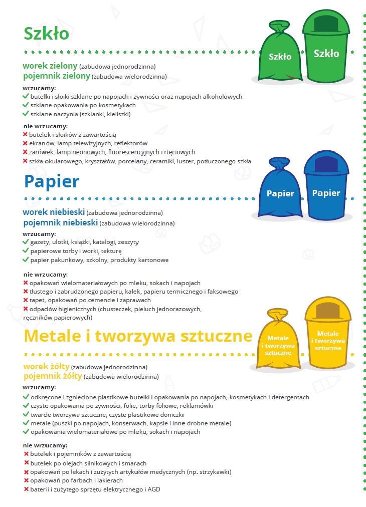W każdy budynku, w którym znajdują się systemy do segregacji – prowadzone będą kontrole przez ZGK. Proszę zapoznać się z zasadami selektywnej zbiórki i przyzwyczajać się do nowych zasad.