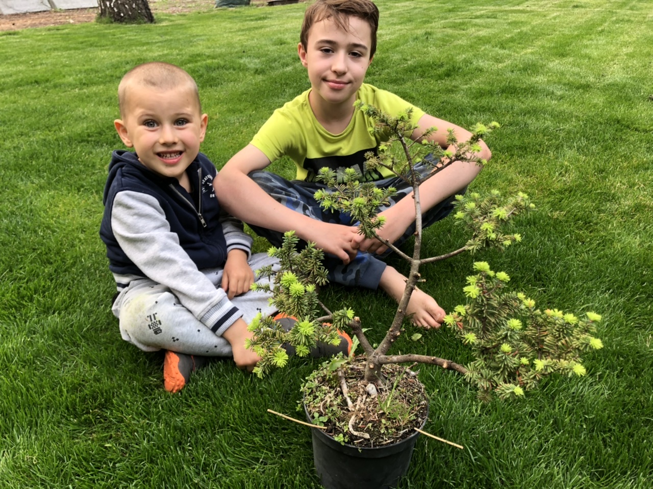 Krzyś bonsai za 15 zl z jałowca … i pracujemy nad kształtowaniem cechy chrakteru “cierpliwości” bo urożnie za lat 10 i będzie jak te za 565zl.