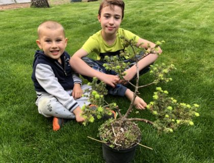 Krzyś wypatrzył sobie drzewko bonsai. Duże. Ukształtowane z jałowca. Cena 565 złotych(!). Udało mi się przekonać go, że mo...