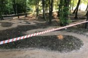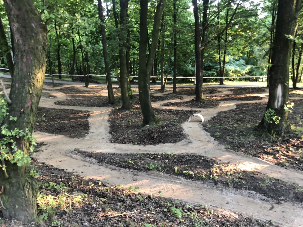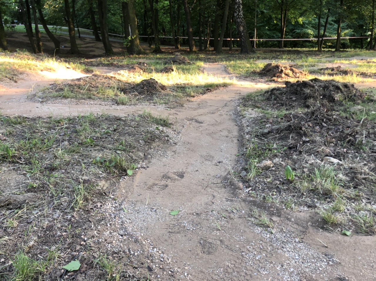 Kolejny etap to była praca. Teren okazał się naprawdę trudny. Kamieni, korzeni i wszelakiej maści utrudnień nie brakowało i konieczne było użycie profesjonalnego sprzętu.  Z pomocą przyszła firma Complex, która wykonywała Park w Kamieniu. Niejako przy okazji pomogła inicjatorom w przygotować teren, za co dziękuję, bo prace wymagały cięższego sprzętu. Efekt jest.