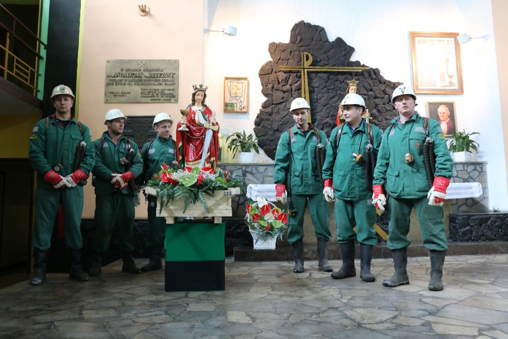 Na powierzchnię przetransportowana została figura świętej Barbary – patronki górników, która do tej pory znajdowała się na poziomie 438 metrów pod ziemią, w specjalnej kaplicy. Zastęp ratowników górniczych umieścił posąg w klatce szybowej. Została ustawiona w cechowni. Jak mówi dyrektor kopalni – jej miejsce jest tam, gdzie pracują górnicy.