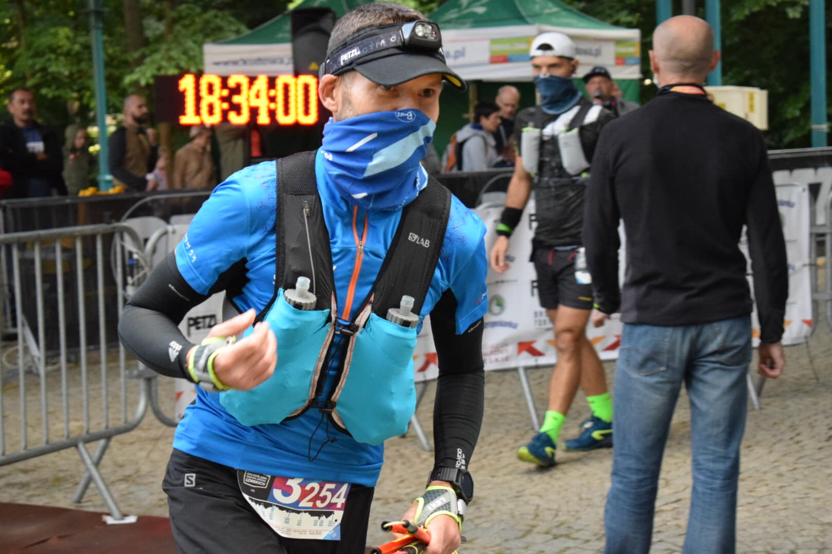 Mój start 18:34, przede mną kilkunastu zawodników, gdyż wyjątkowo wyruszamy na trasę w covidowym reżimie, który oznacza przerwy pomiędzy zawodnikami wynoszące 10 sekund przy obowiązku zasłonięcia nosa i ust. Ustawienie się w ten sposób było elementem taktyki, aby z jednej strony gonić rywali, między innymi faworyta biegu świetnego ultrasa Pawła Dybka, z drugiej, by trudny odcinek biegu zaliczyć jeszcze za dnia.