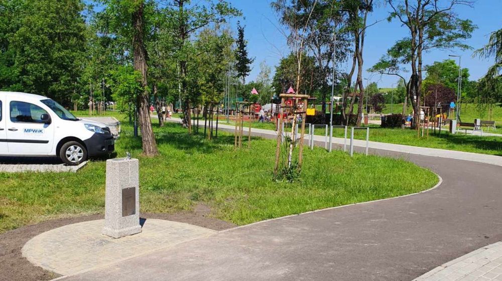 Podobne poidełko znajduje się na placu zabaw – na terenie Miejskiego Ośrodka Sportu i Rekreacji. Wymagało interwencji MPWiK, ale jest już sprawne i serwuje doskonałą wodę.
