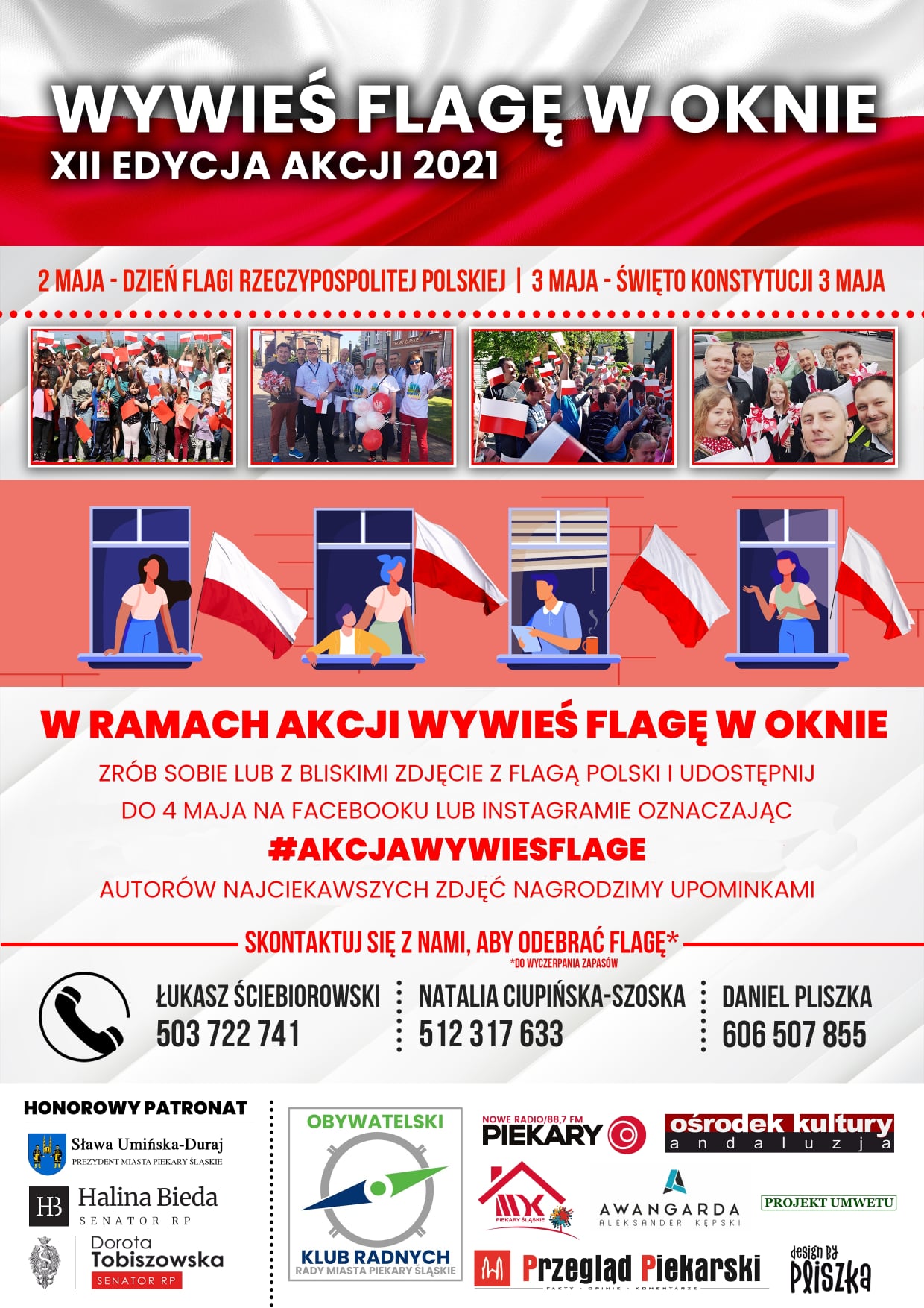Wywieś Flagę w Oknie to akcja, którą prowadzimy nieprzerwanie od roku 2010 z okazji Święta Konstytucji 3 Maja i przypadającego 2 maja Dnia Flagi Rzeczypospolitej Polskiej. W tym roku już po raz dwunasty radni Obywatelskiego Klubu Radnych i społecznicy oraz partnerzy wydarzenia zachęcają do pozytywnego patriotyzmu, barwnego i radosnego obchodzenia świąt majowych.