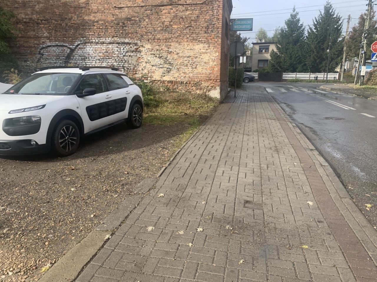 Chodniki przy parkingu koło Szarlejskiego cmentarza.