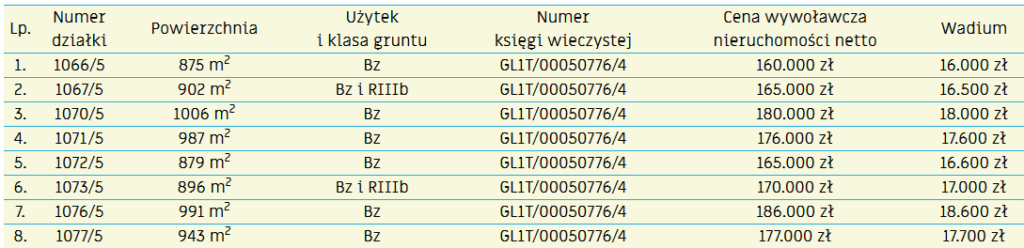 Wadium w wysokości ustalonej dla każdej z działek należy wnosić w pieniądzu przelewem na konto:
