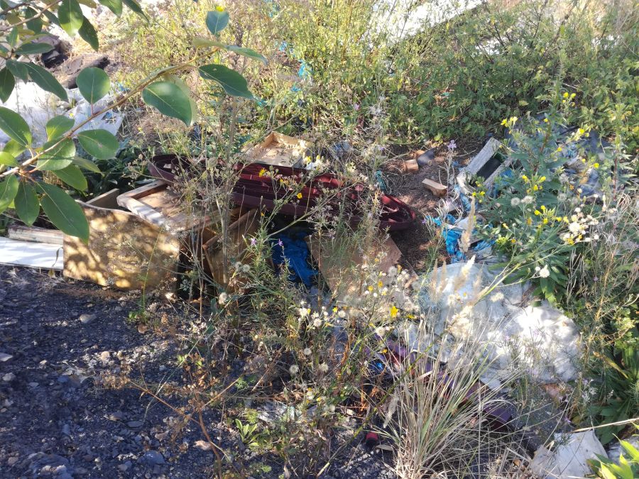 Latem rosnące drzewka nieznacznie przysłaniają śmieci.