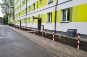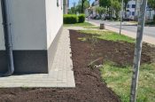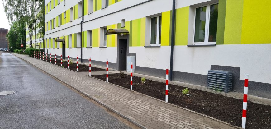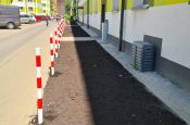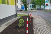Powstają kolejne ogródki przydomowe zabezpieczone fizycznie przed rozjeżdżaniem przez samochody. Zapewni to wzrost bezpieczeństwa pod klatką schodową, da minimum przestrzeni zieleni buforowej między blokiem a ulicą oraz poprawi estetykę.