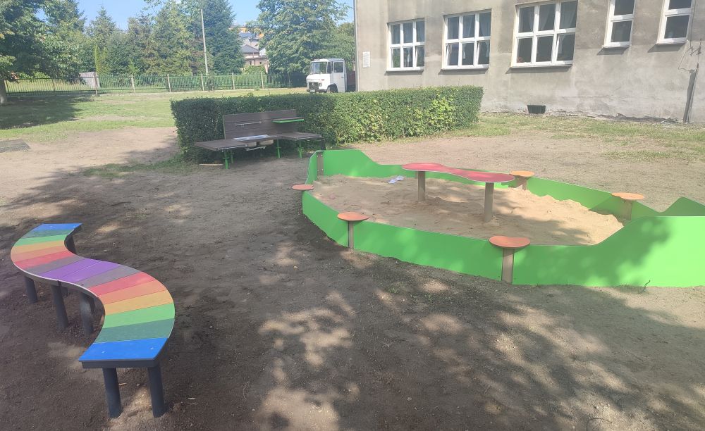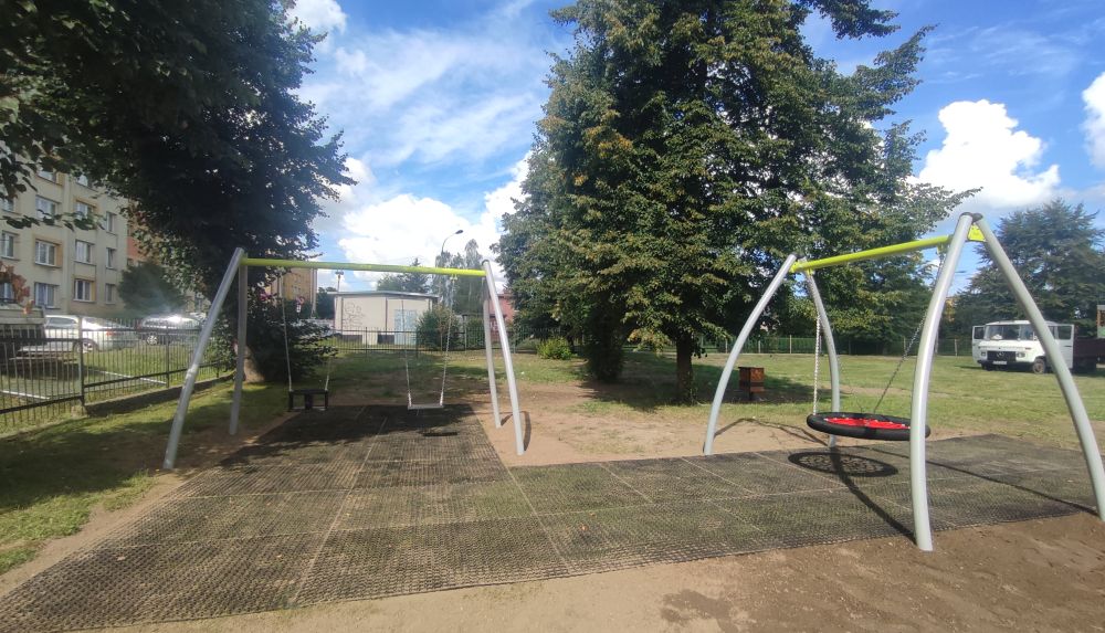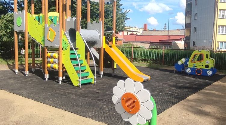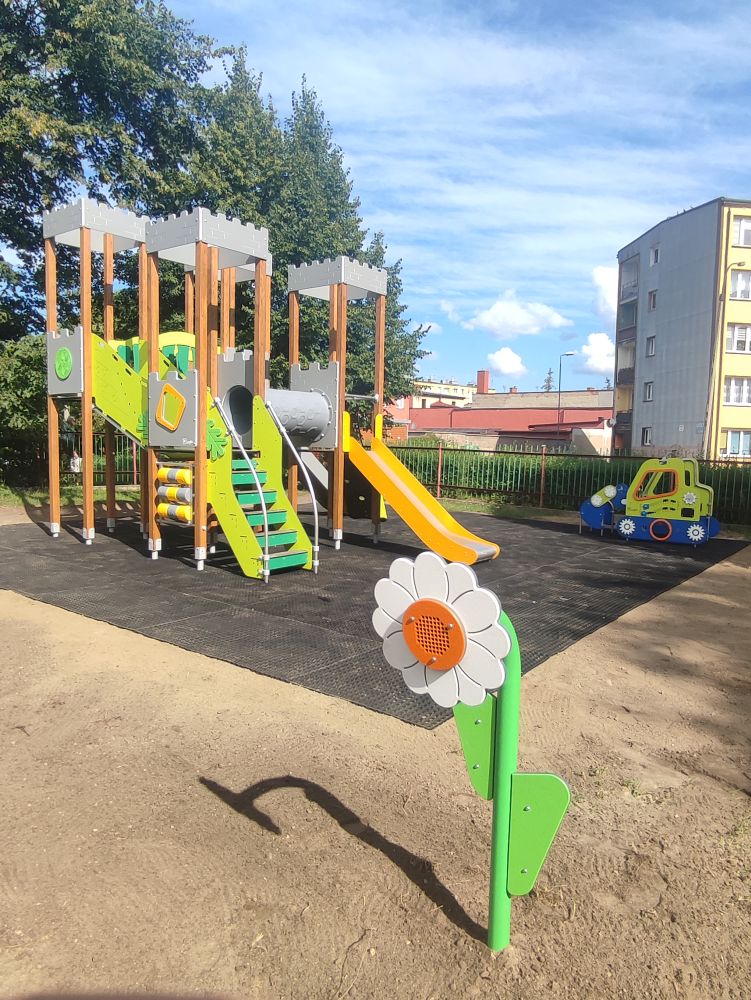 Dodatkowo na terenie placu zabaw zamontowano nowe ławki, kosze na śmieci czy wysokie donice na kwiaty. Zamontowano również nawierzchnię bezpieczną typu mata przerostowa w celu zapewnieniu bezpieczeństwa korzystających.